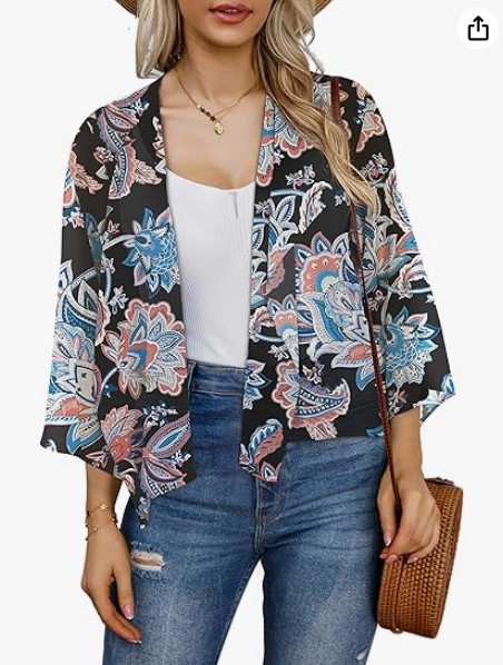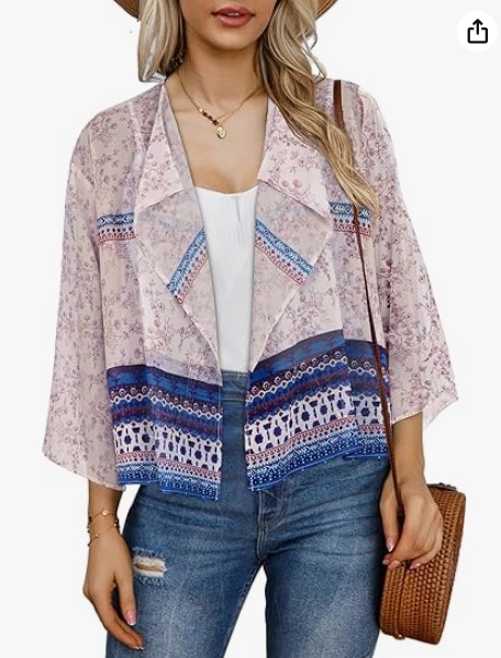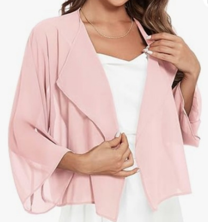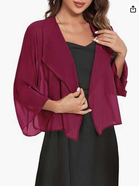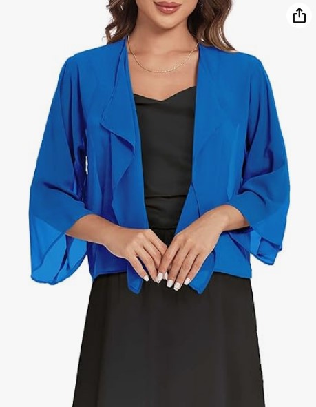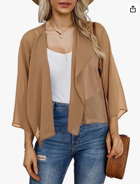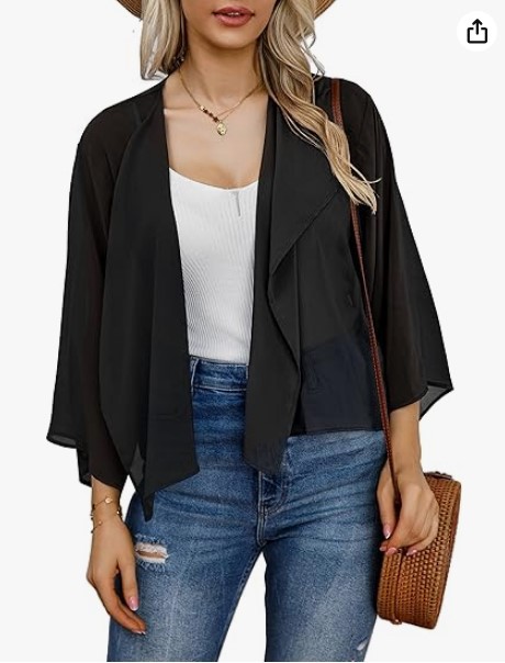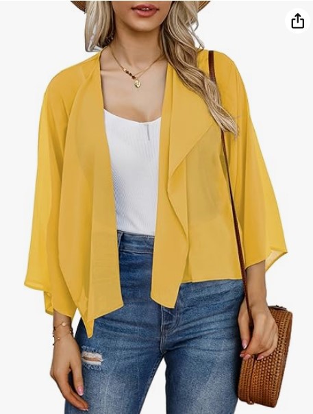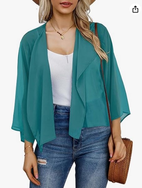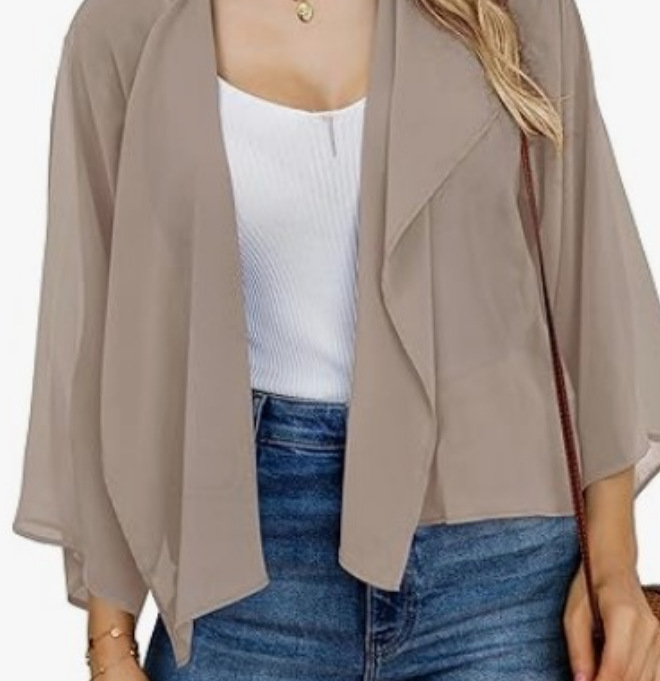 2023 아마존 뜨거운 판매 캐주얼 벨 슬리브 드레이프 단색 쉬폰 짧은 카디건 태양 보호 탑스토어 가기