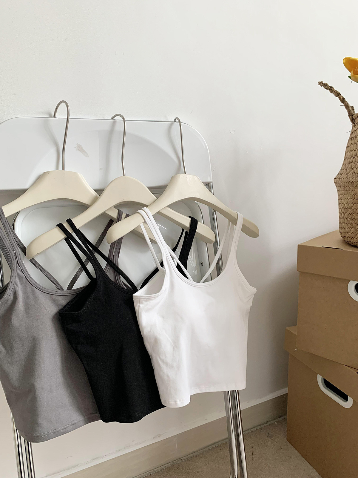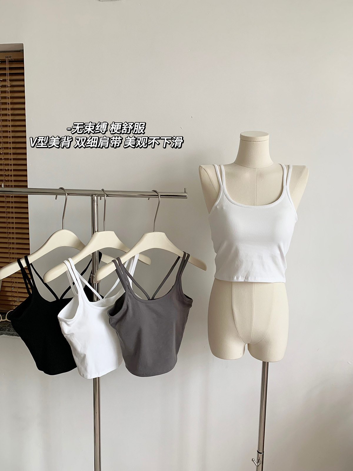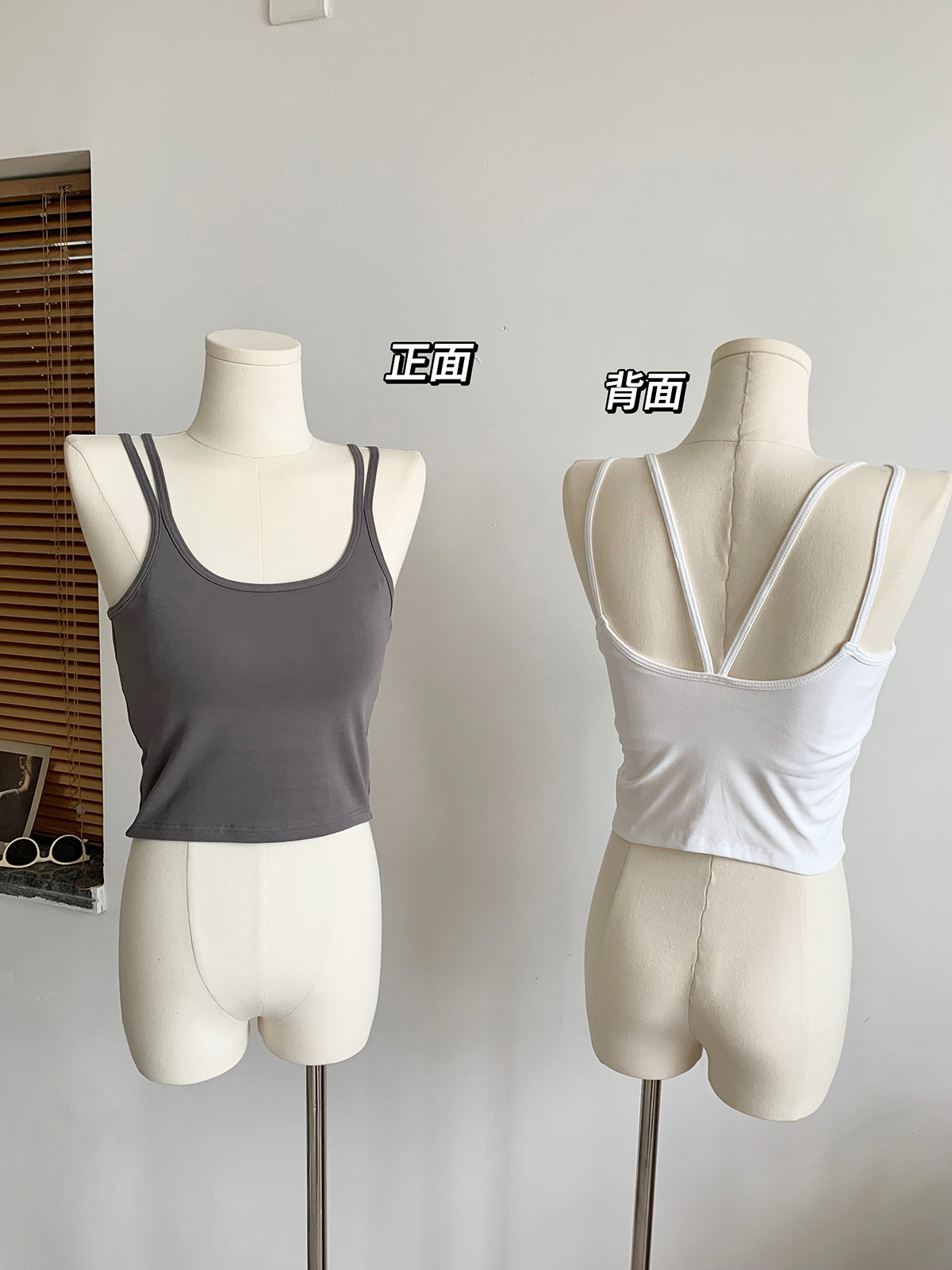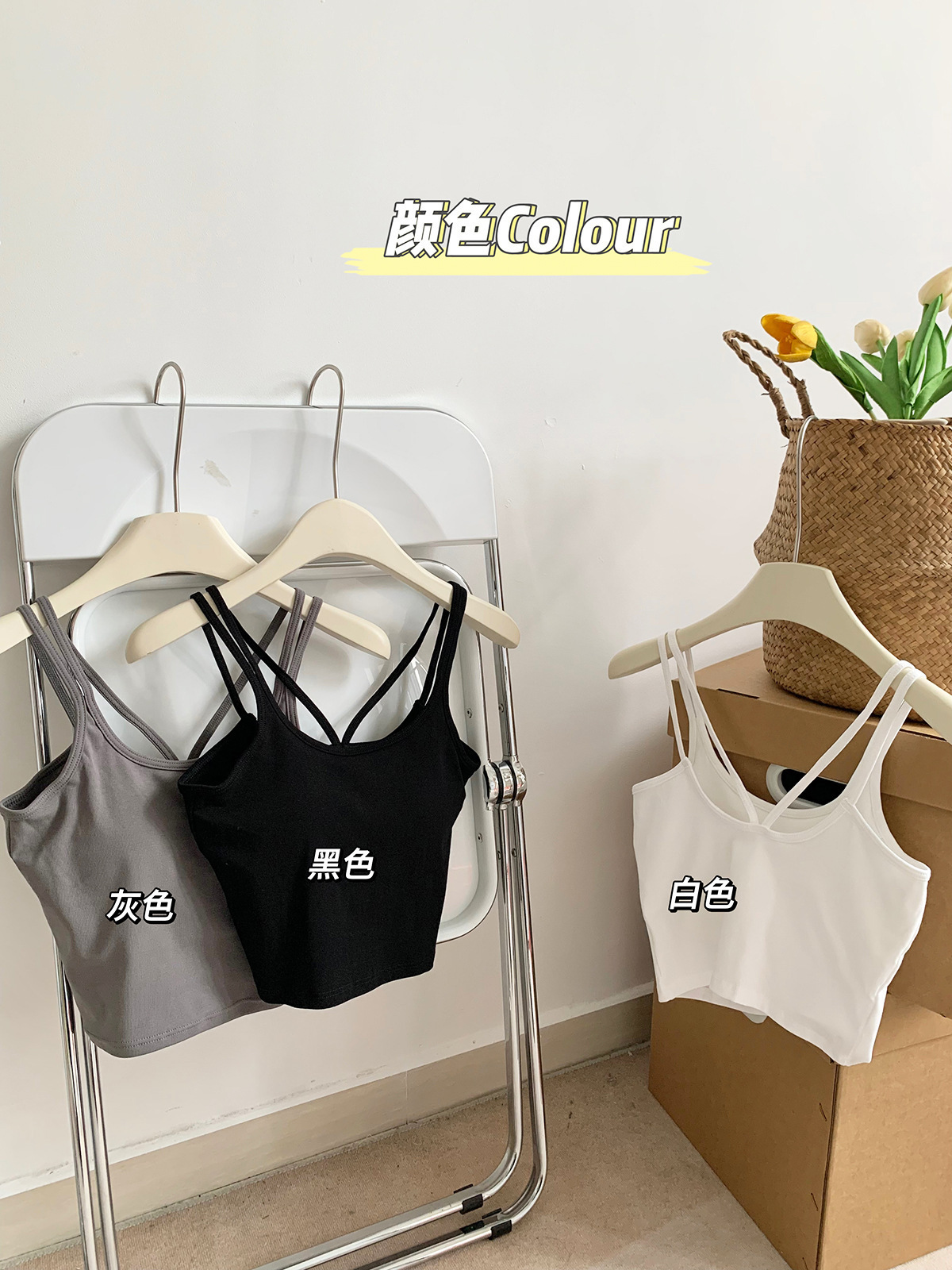Zhao Lusi의 같은 스타일 흰색 서스펜더 아름다운 등받이 조끼 여성용 유방 패드 순수한 정욕 스타일 U 넥 슬리밍 짧은 스타일 가슴 랩스토어 가기