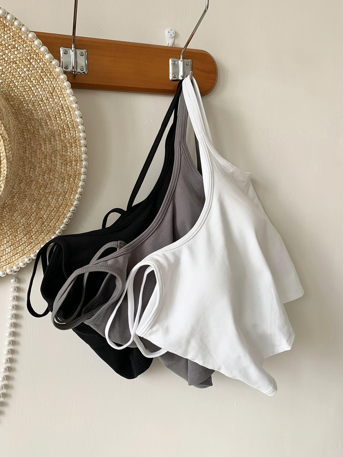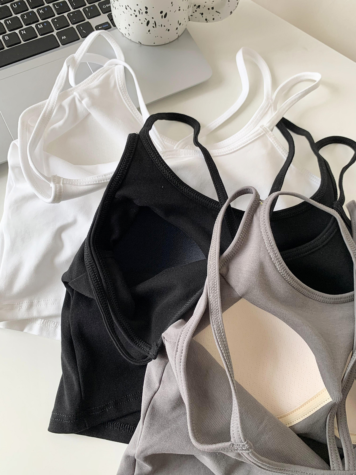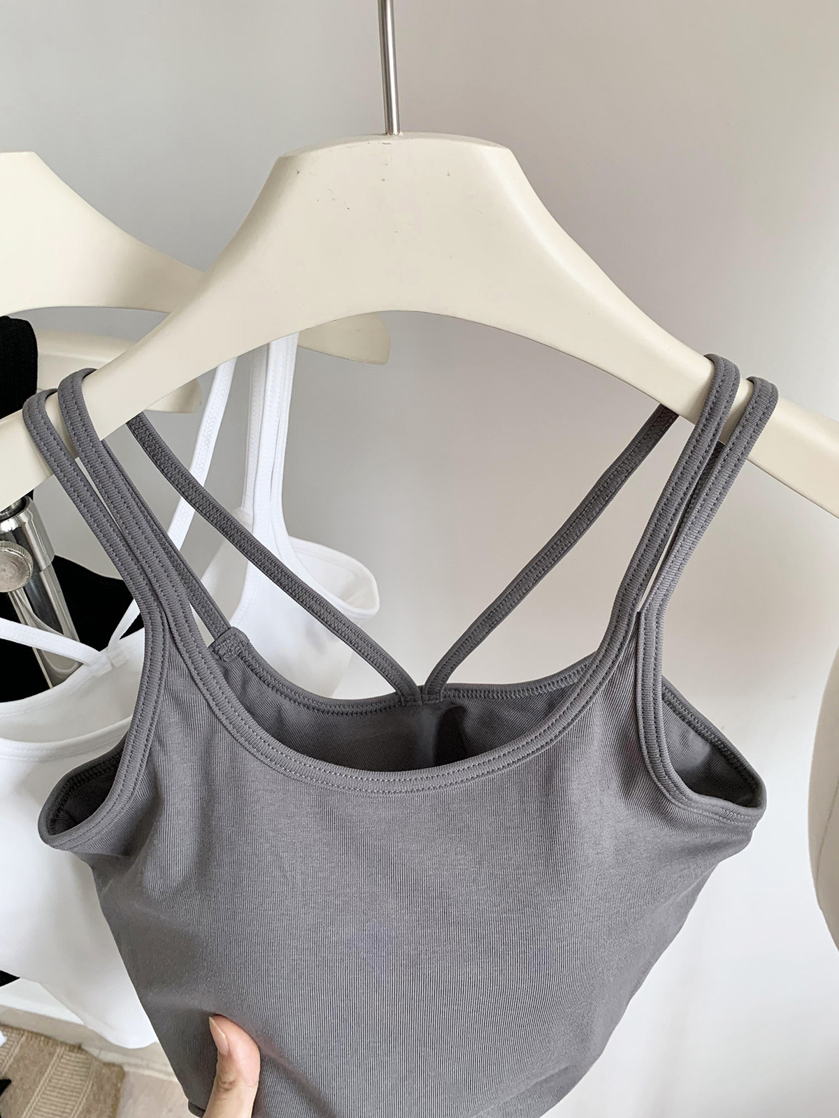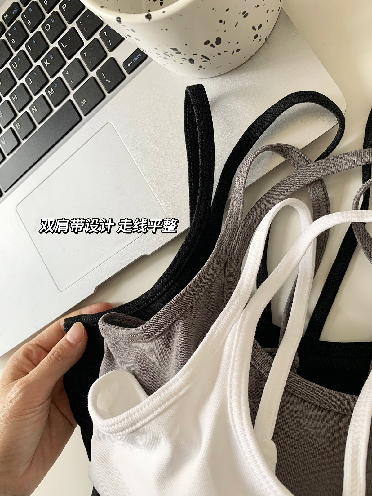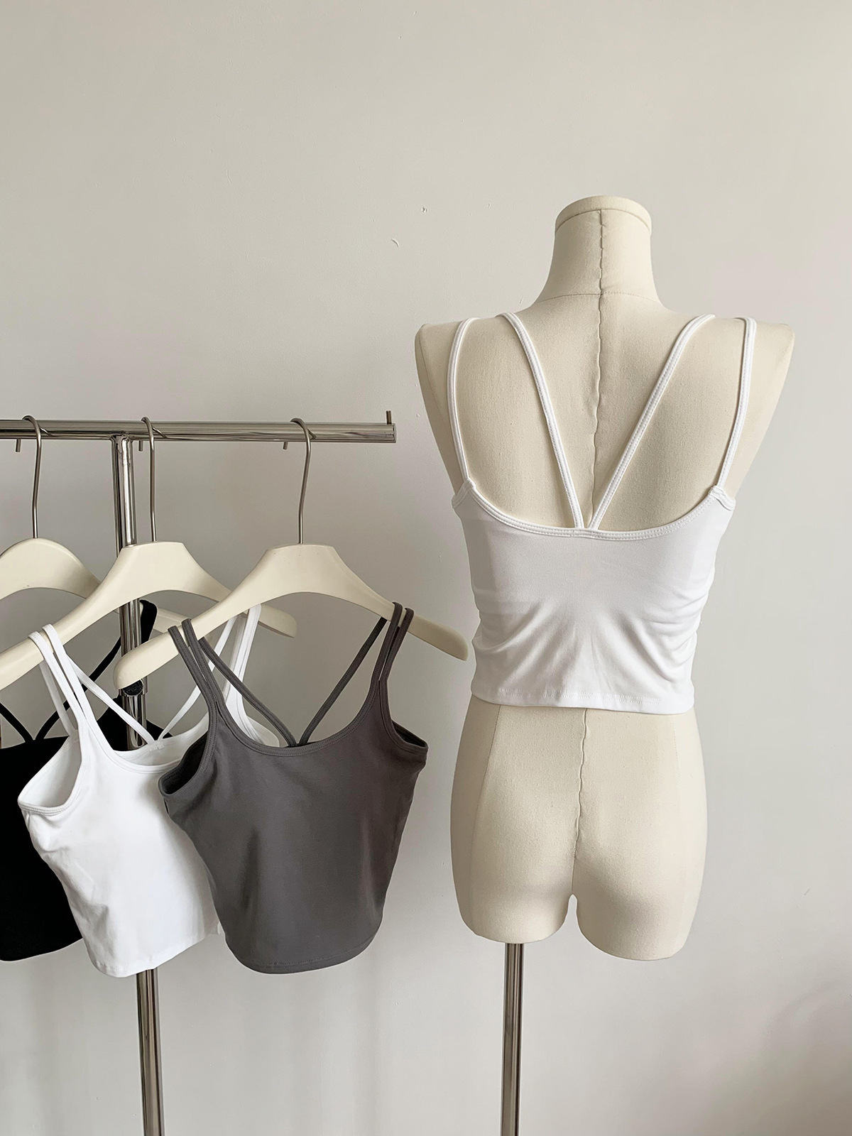Zhao Lusi의 같은 스타일 흰색 서스펜더 아름다운 등받이 조끼 여성용 유방 패드 순수한 정욕 스타일 U 넥 슬리밍 짧은 스타일 가슴 랩스토어 가기