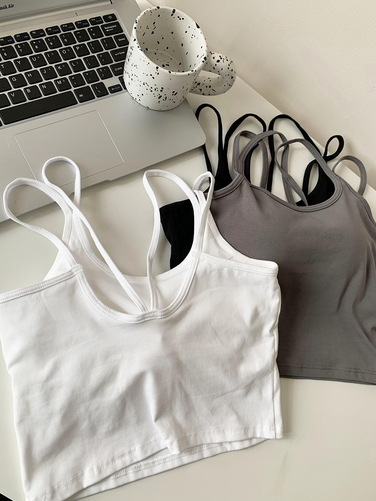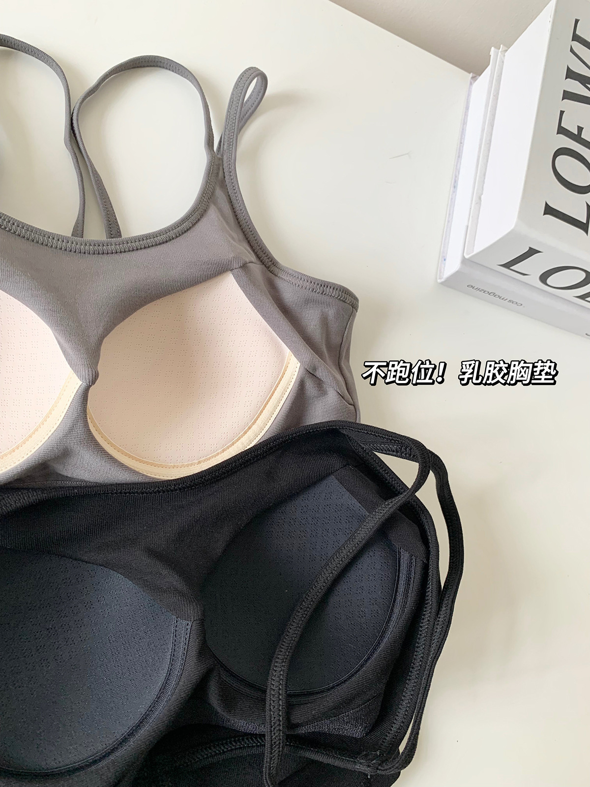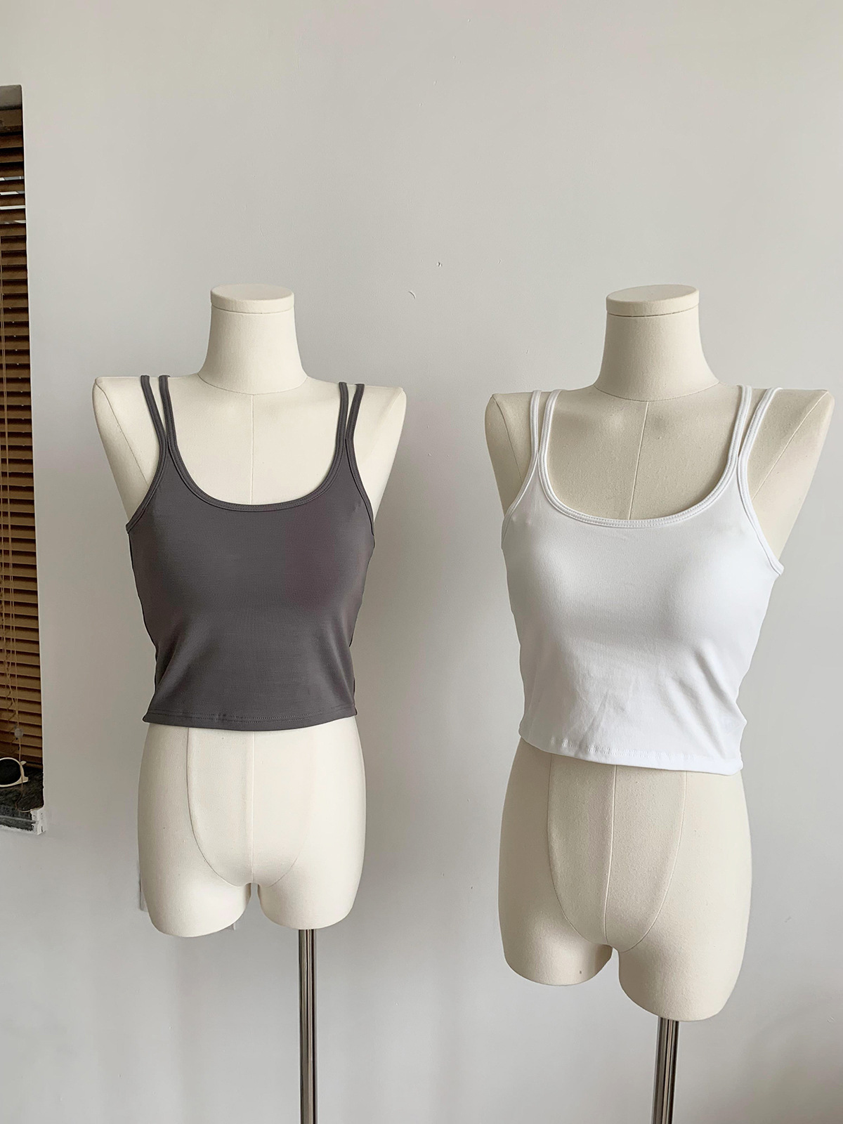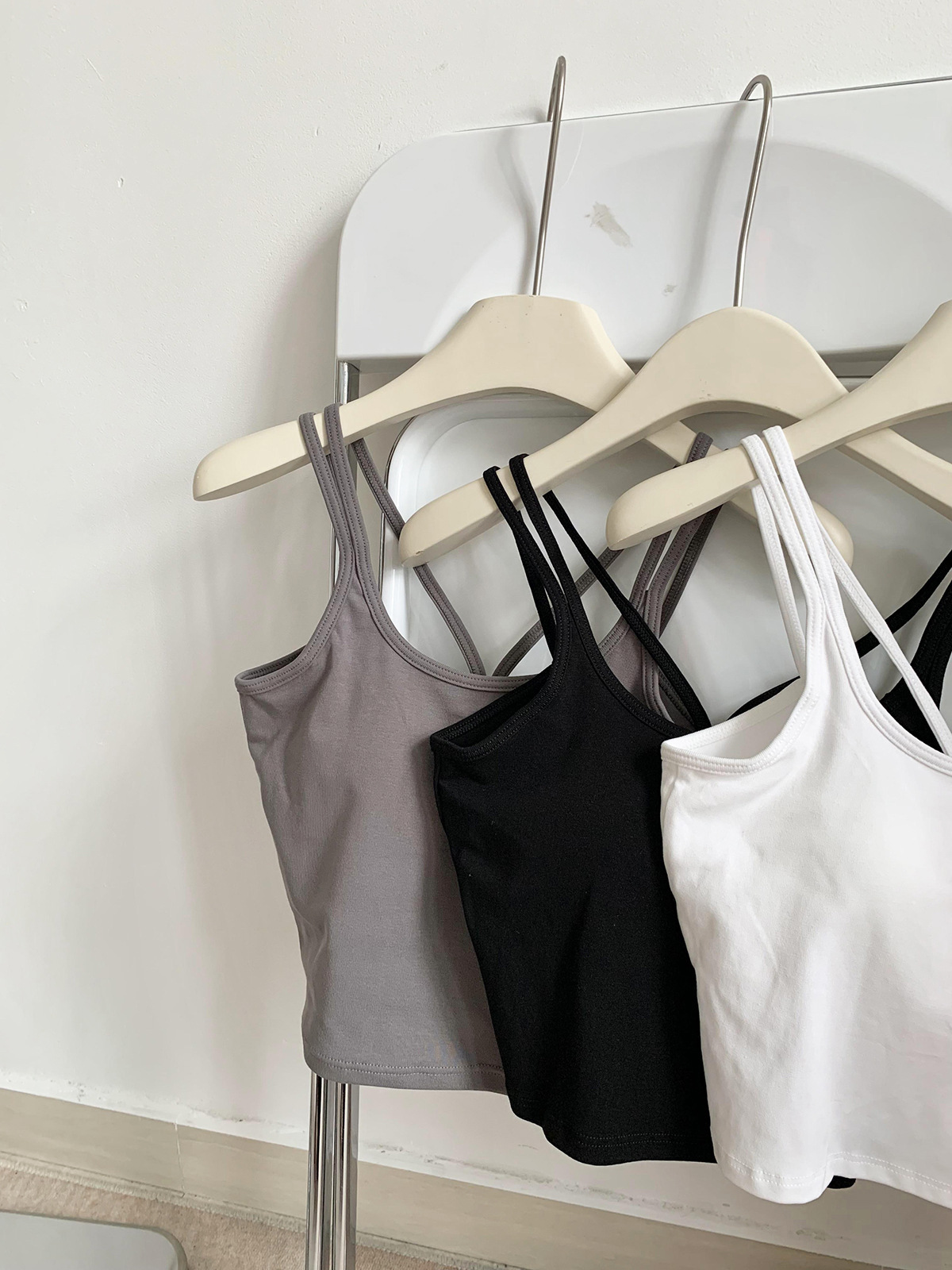 Zhao Lusi의 같은 스타일 흰색 서스펜더 아름다운 등받이 조끼 여성용 유방 패드 순수한 정욕 스타일 U 넥 슬리밍 짧은 스타일 가슴 랩스토어 가기