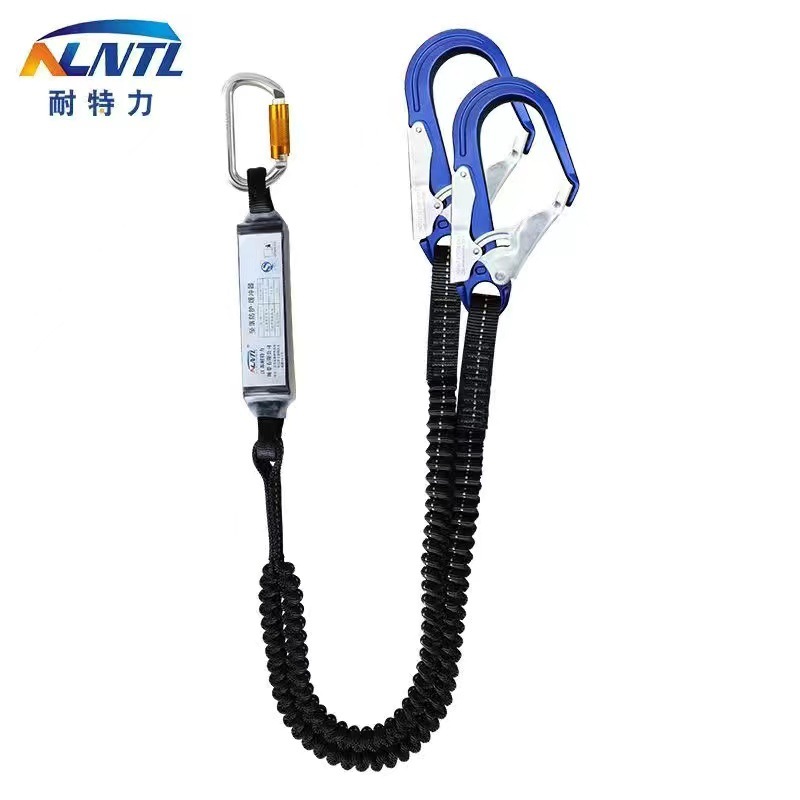 안전 벨트 2 보호 로프 공중 작업 버퍼 백 세트 가을 보호 로프 장비가있는 단일 및 이중 알루미늄 후크