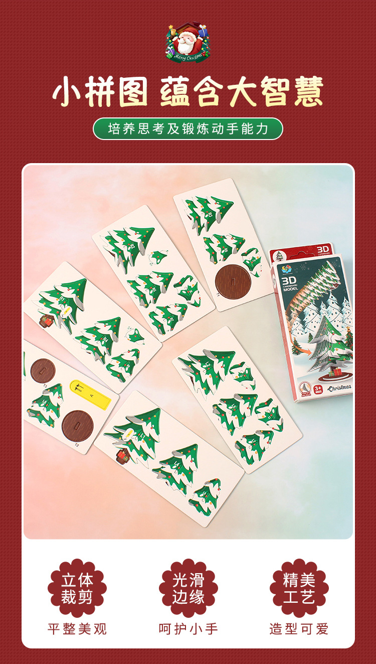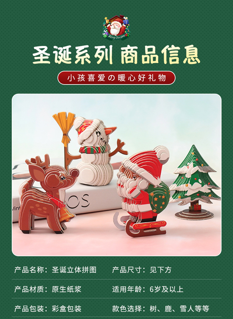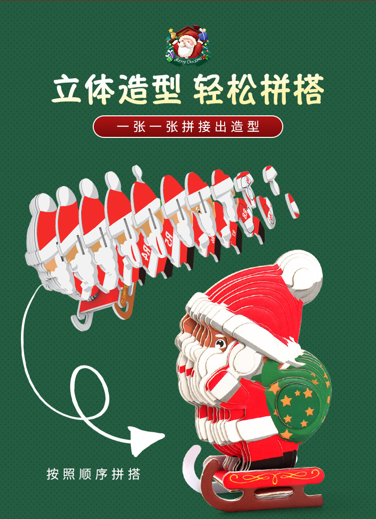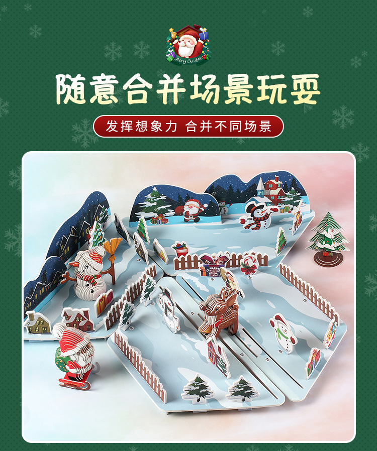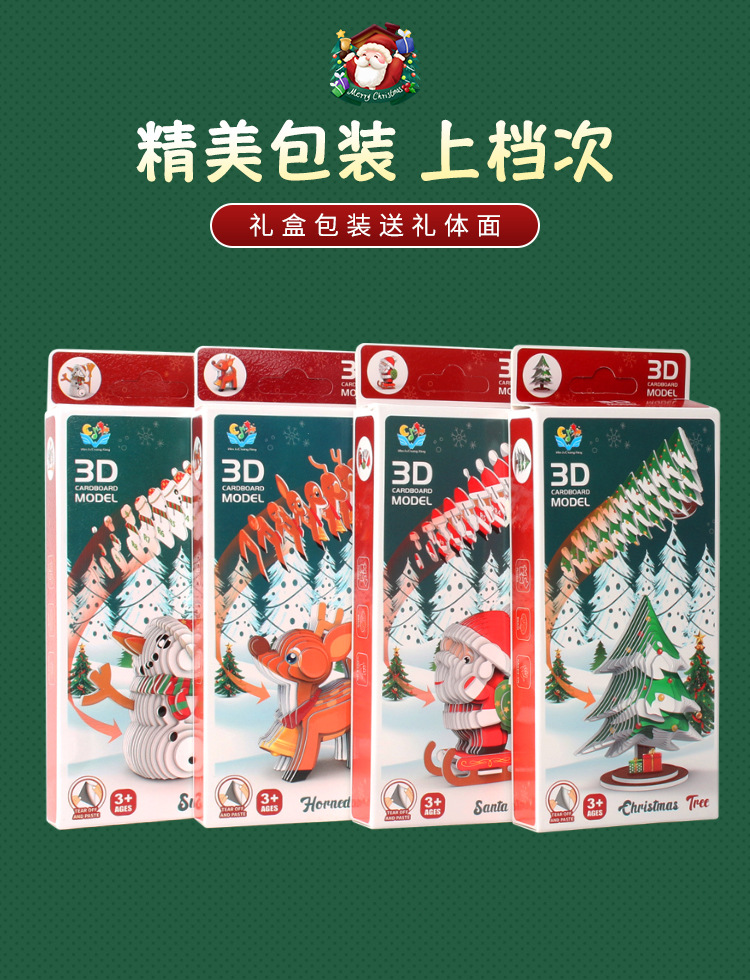 만화 크리스마스 3D 입체 퍼즐 어린이 DIY 교육용 조기 교육 종이 퍼즐 유치원 장난감 도매스토어 가기