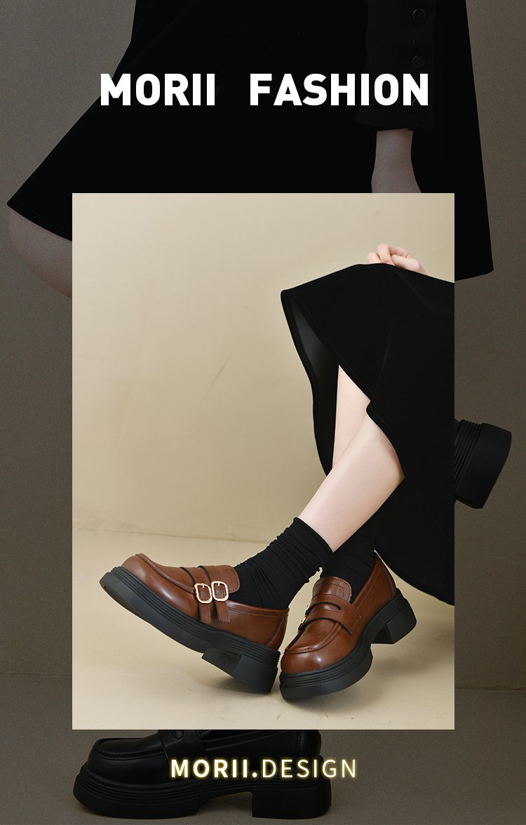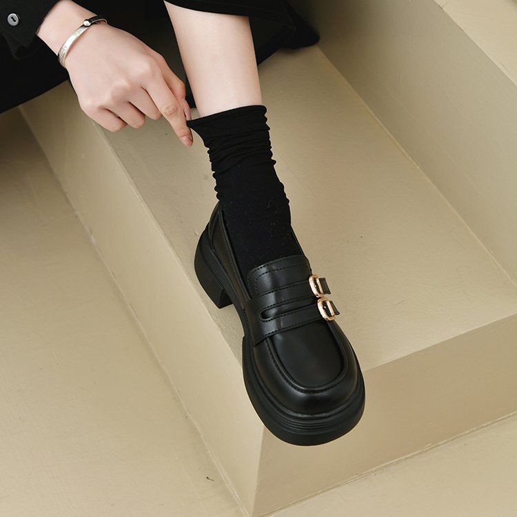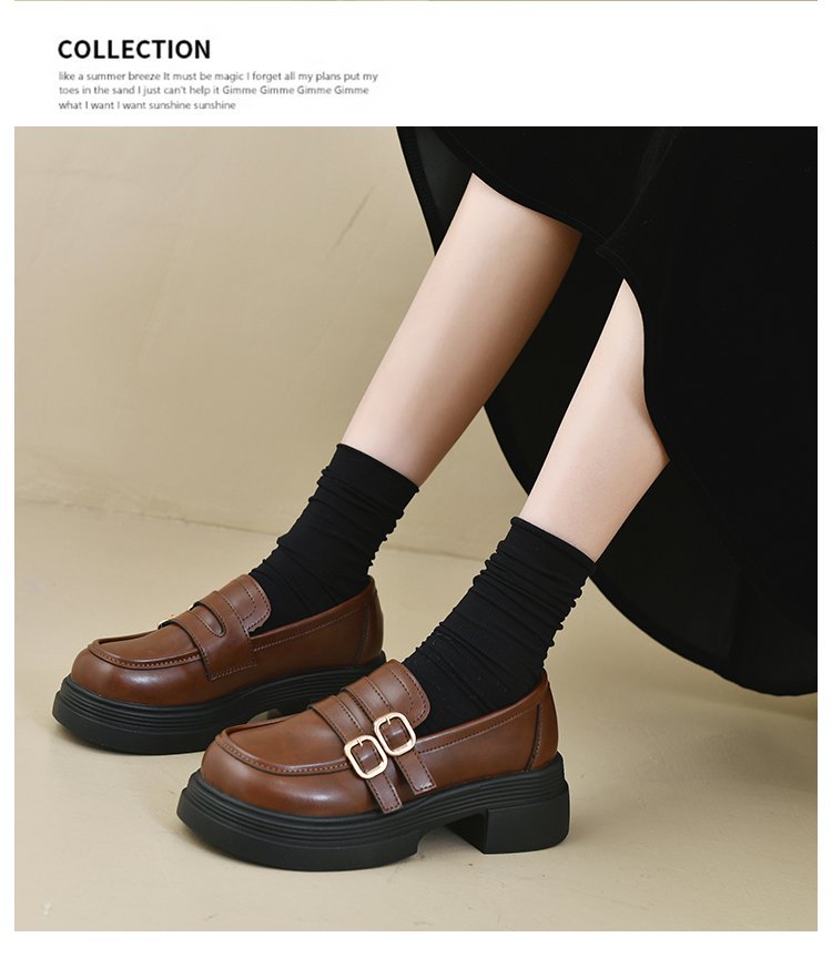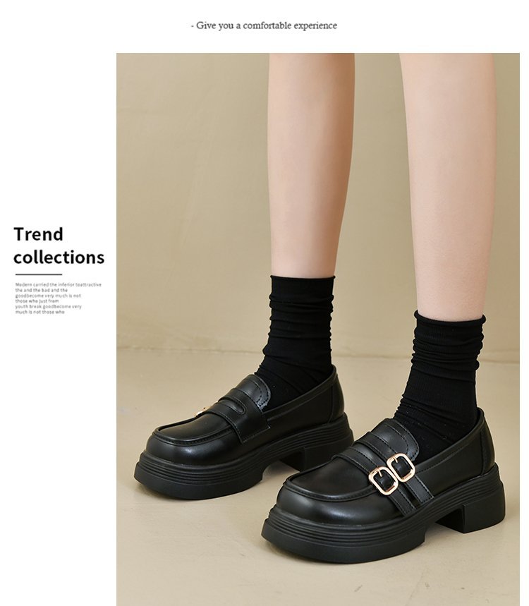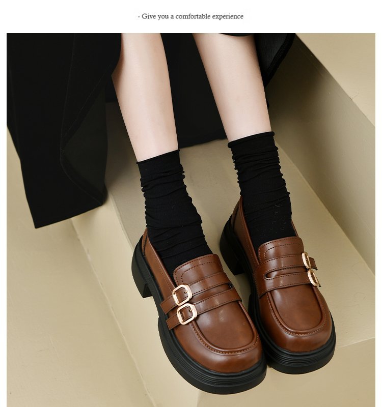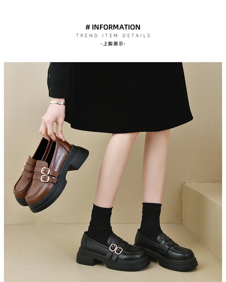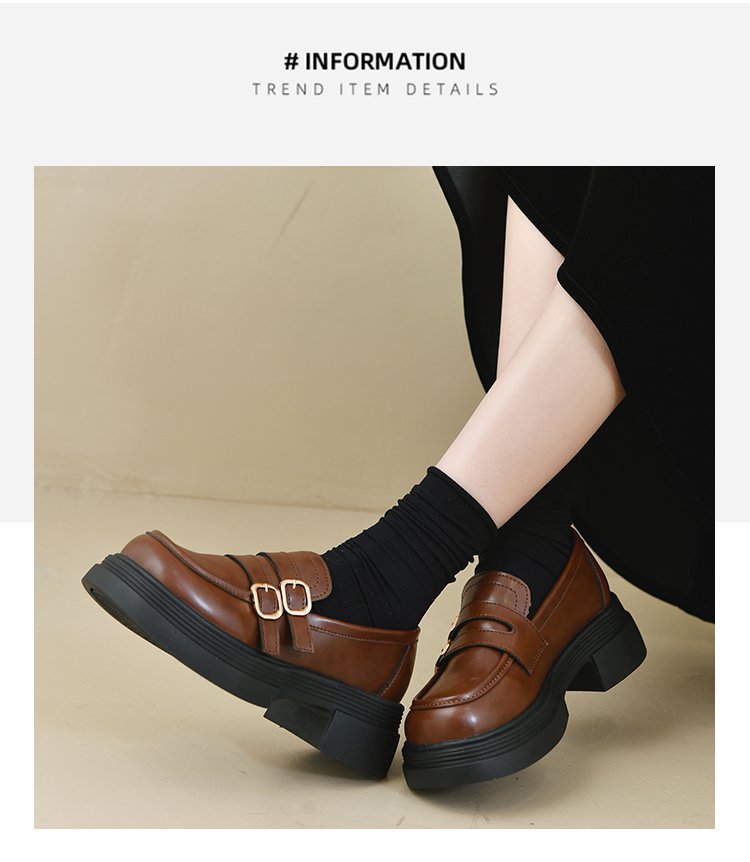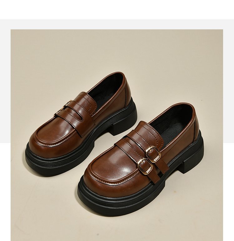 Kelaiya 영국 가죽 신발 여성 2023 가을 새로운 플랫폼 로퍼 대학 라운드 토 돼지 허리 신발