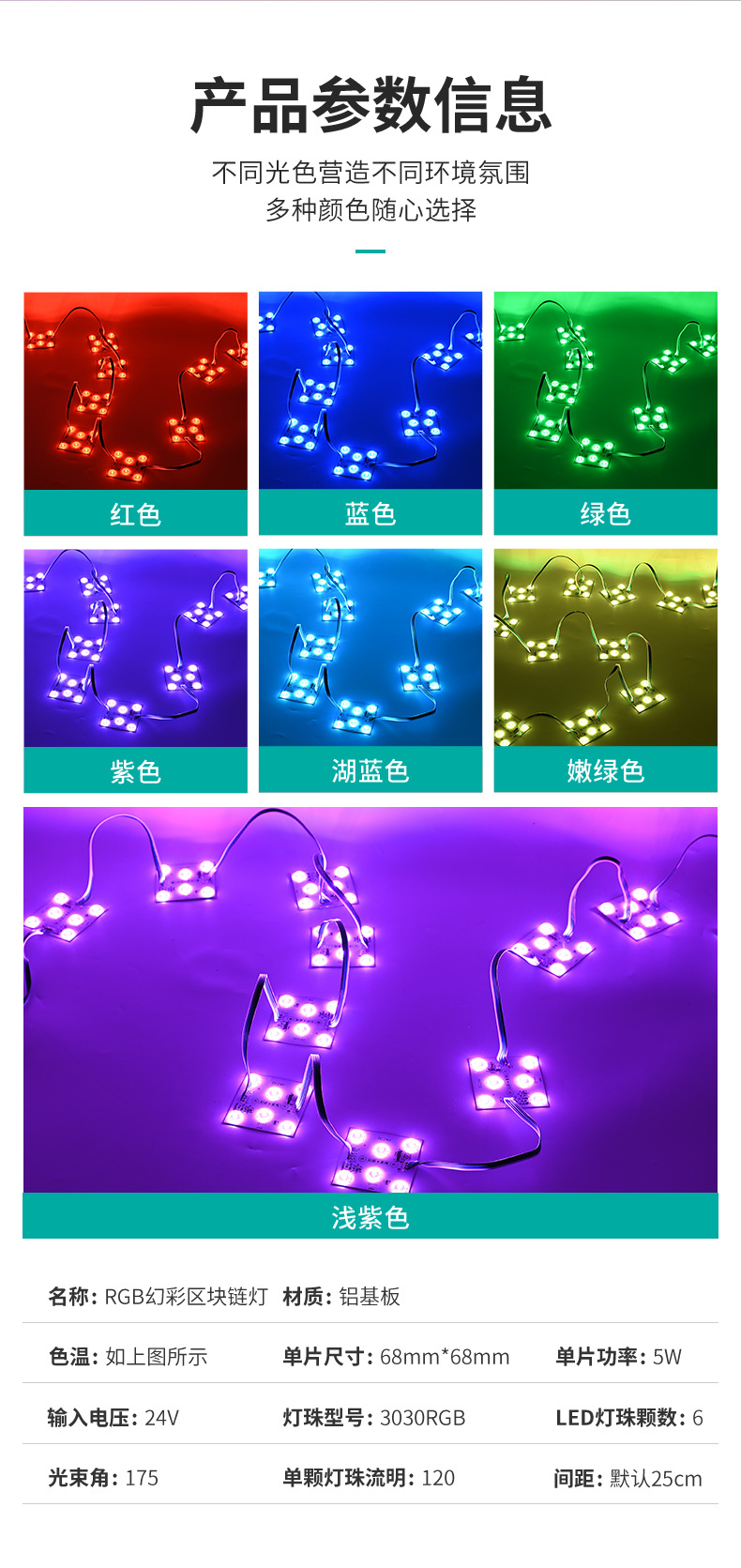 RGB幻彩区块尺寸70*70mm,5W/pcs.