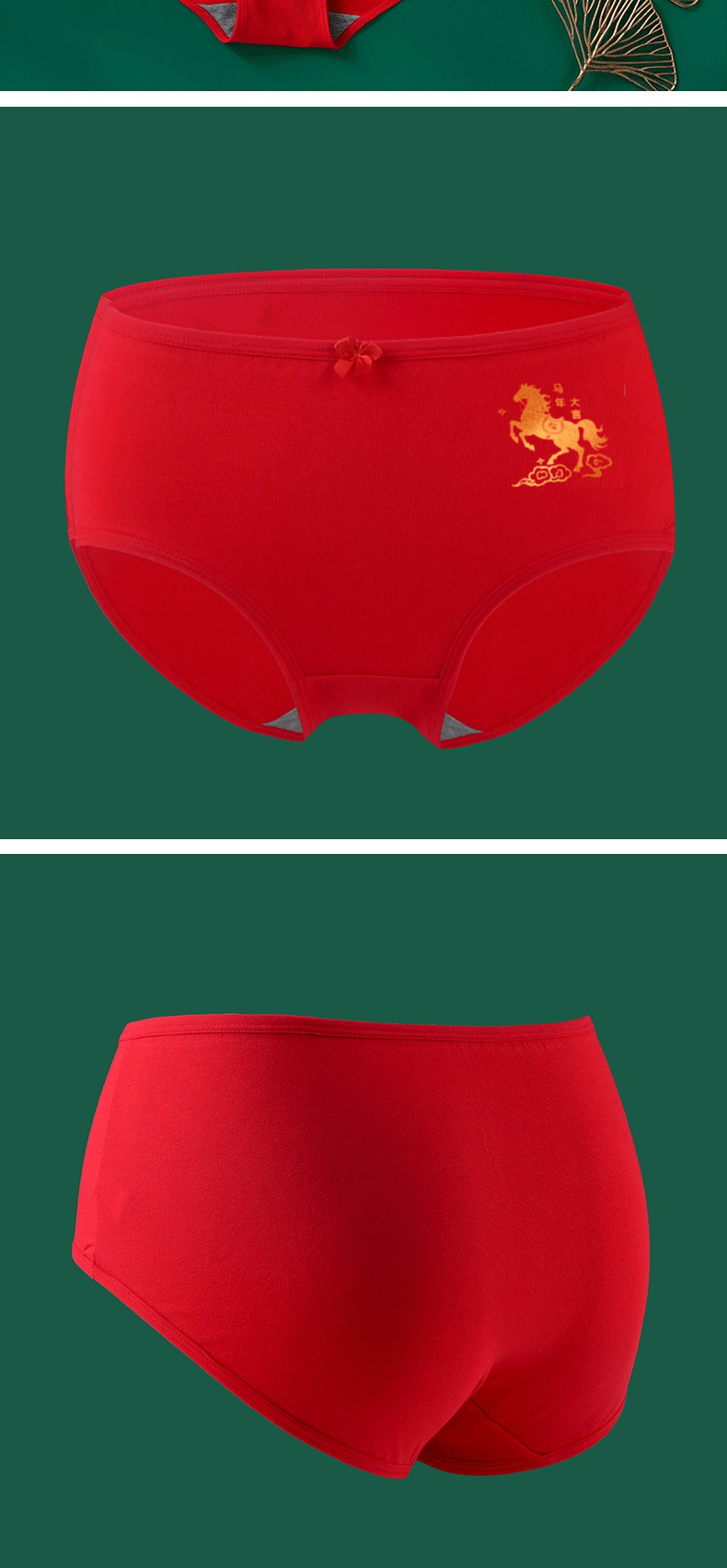 말의 해 여성용 삼각팬티, 빨간색 웨딩 중간허리 팬티, 말의 해를 맞아 빨간색 무봉제 팬티, 여성용 빨간 팬티스토어 가기
