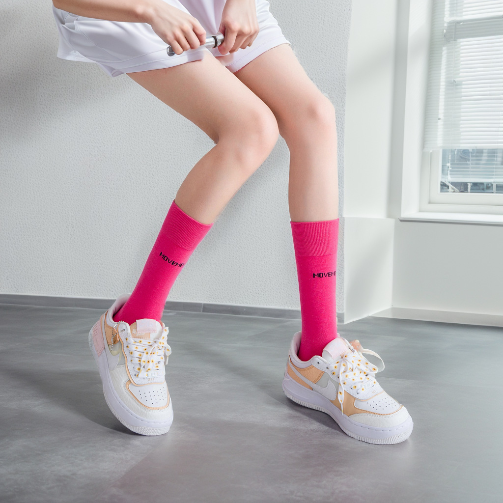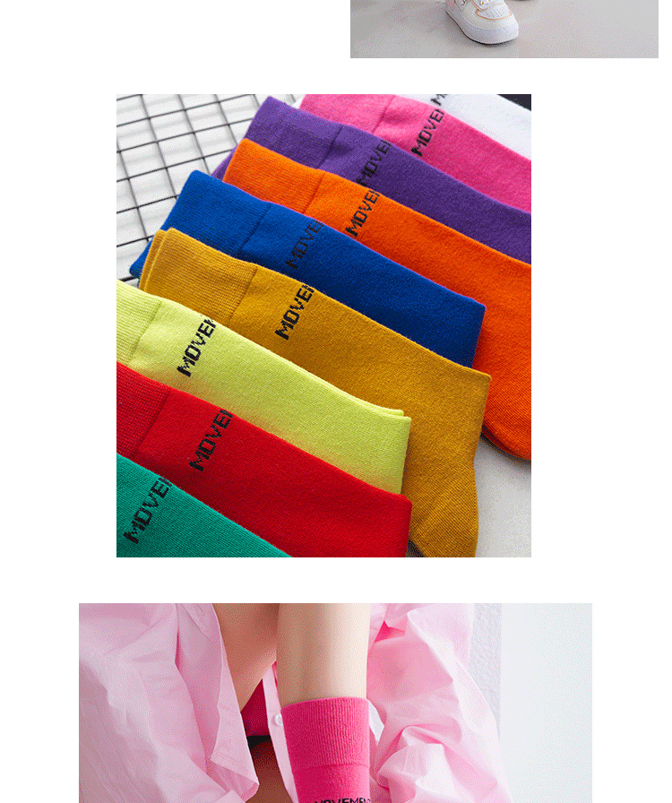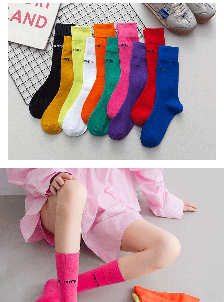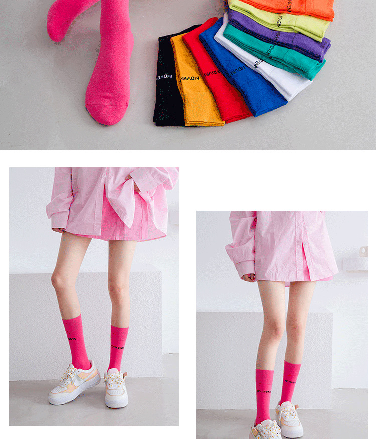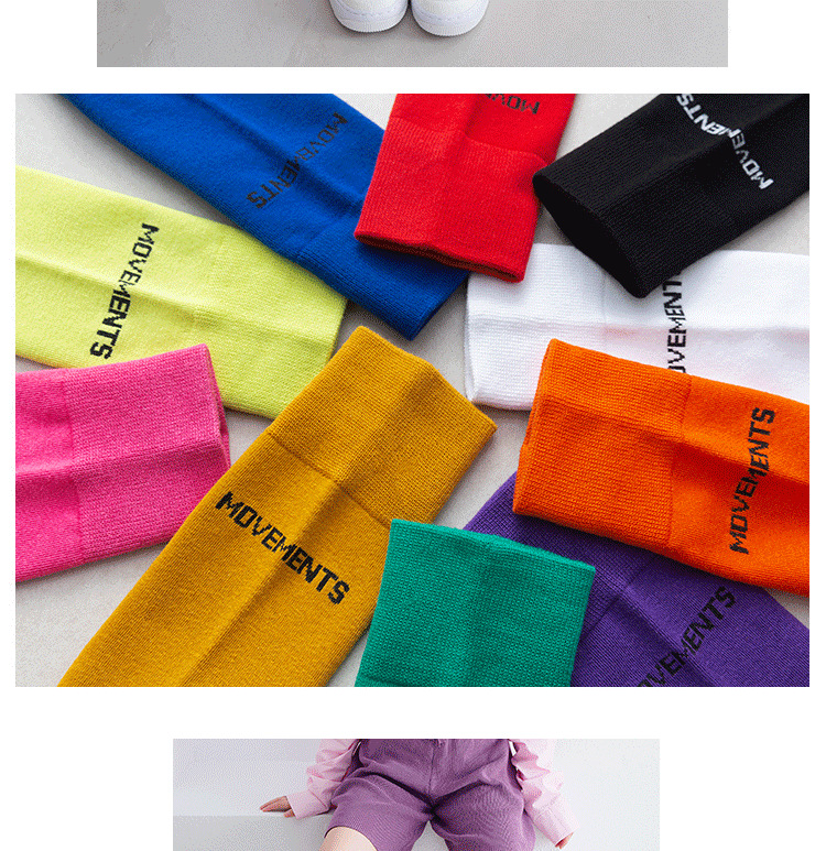 새로운 한국식 중간 송아지 피트니스 스포츠 양말 여성용 종아리 양말, 트렌디 한 거리 캔디 컬러 스포츠 양말 배치스토어 가기