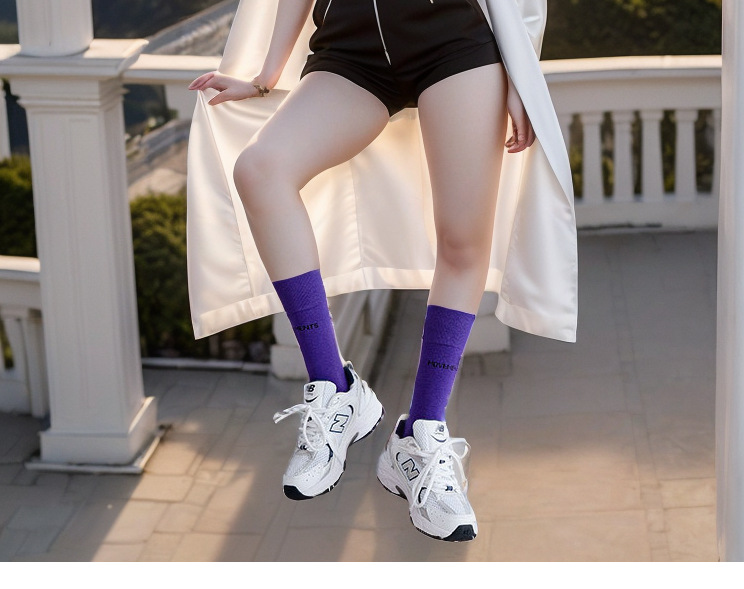 새로운 한국식 중간 송아지 피트니스 스포츠 양말 여성용 종아리 양말, 트렌디 한 거리 캔디 컬러 스포츠 양말 배치
