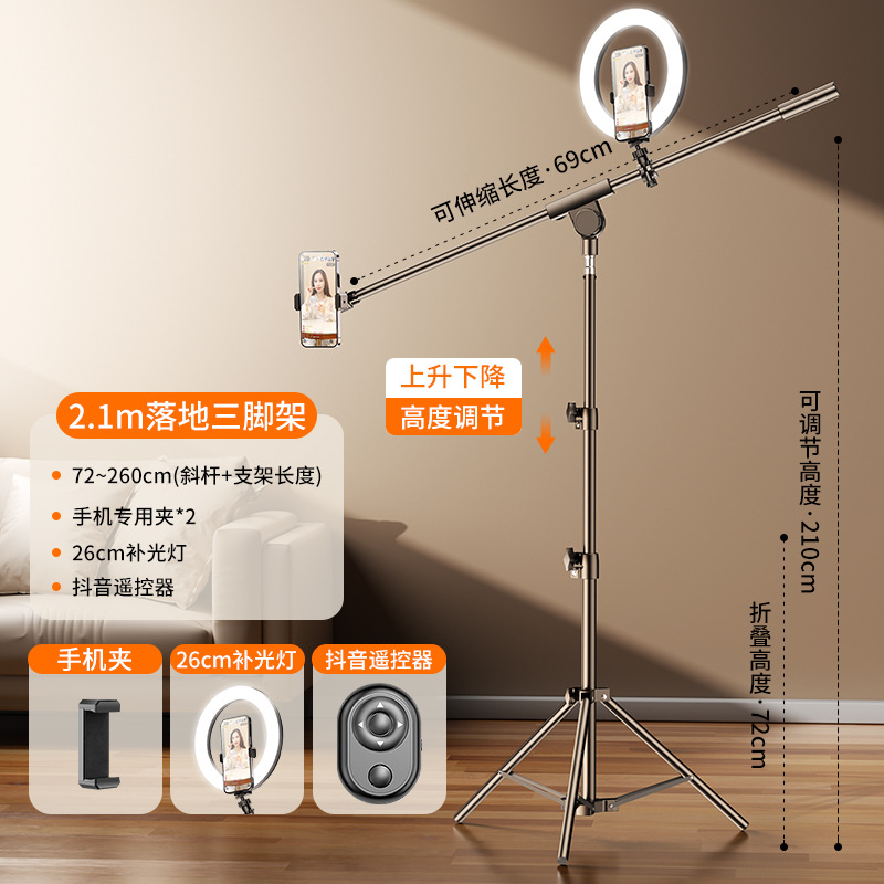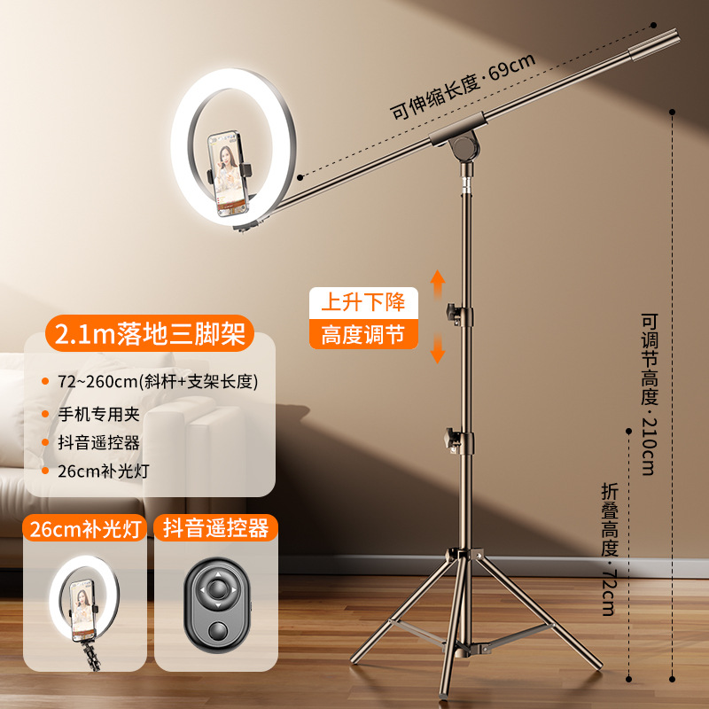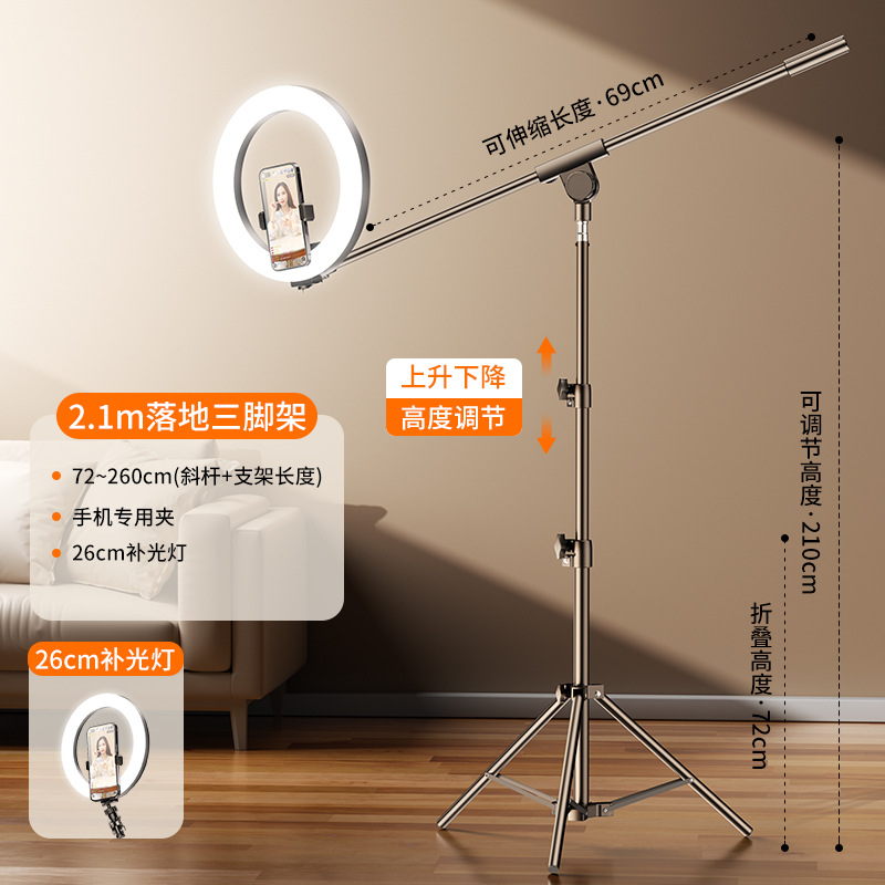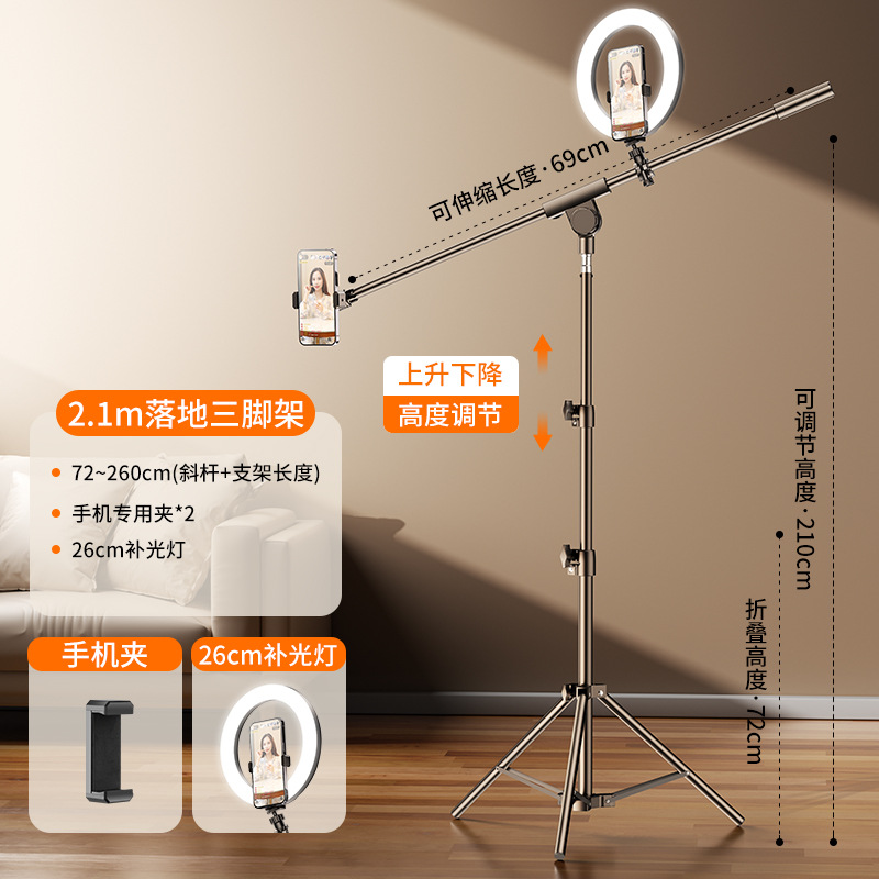 • 2.1 미터 | 이중 기계 위치 [26cm 보충 조명 램프 ☆ 멀티 앵글 크로스바 브래킷] 블루투스 트레몰로 셀카 보관 가방을 보내