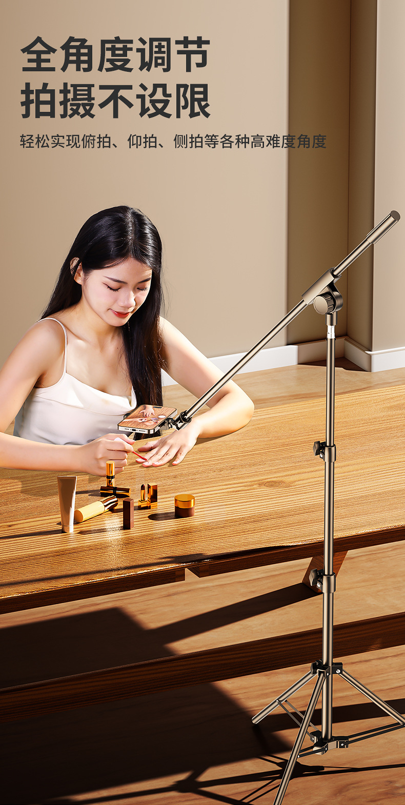 다기능 오버 헤드 휴대 전화 브래킷 라이브 촬영 바닥부터 바닥까지 삼각대 사진 셀카 라이트 삼각대