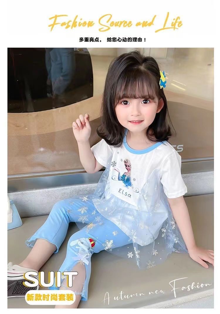 여자 여름 세트 새 아동복 아동용 반팔 티셔츠 중소 어린이 서양식 아기베이스 재킷 투피스 세트스토어 가기