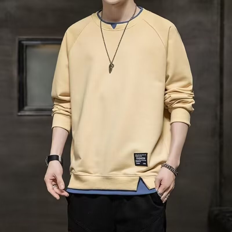 공장 도매 한국식 남성 가을 간단한 트렌디 한 풀오버 라운드 넥 스웨터 남성 청소년 느슨한 올 매칭 탑