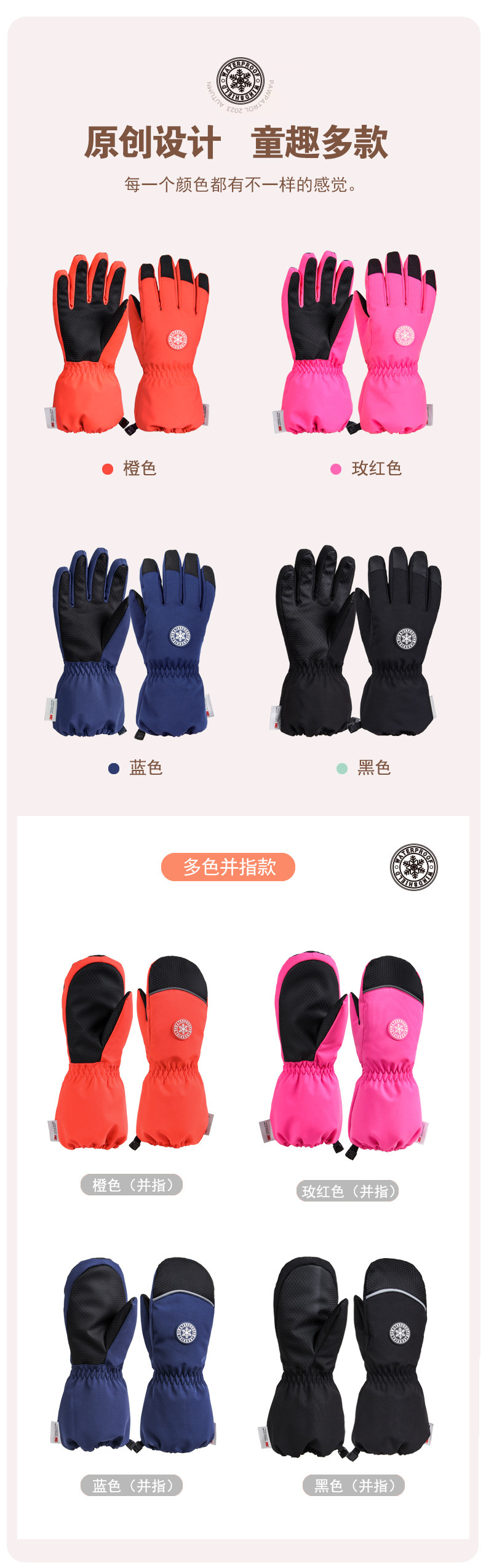 겨울 새 스키 장갑 두꺼운 어린이 다섯 손가락 스키 장갑 방풍 및 손가락 소녀 스키 장갑 소년스토어 가기