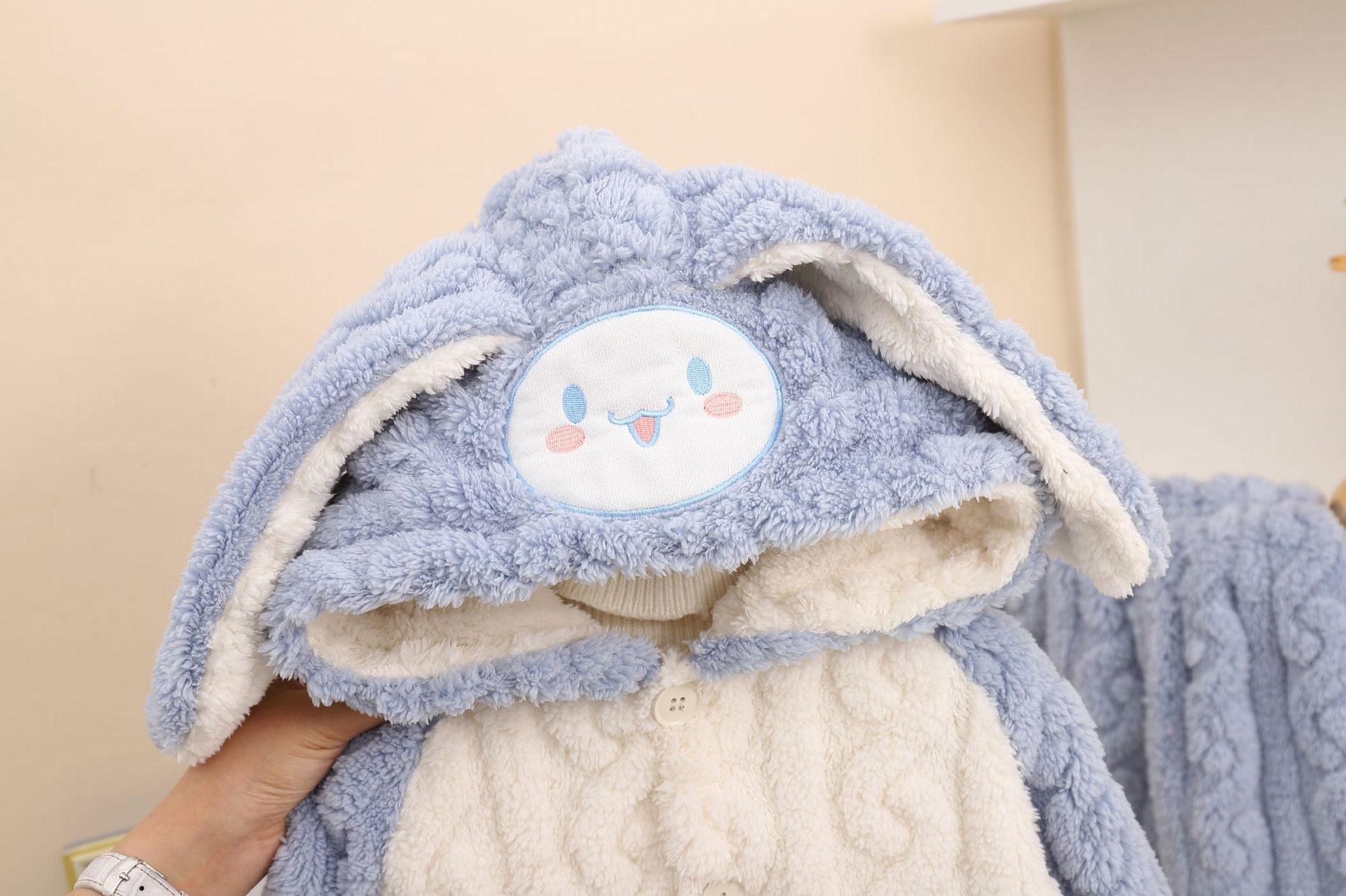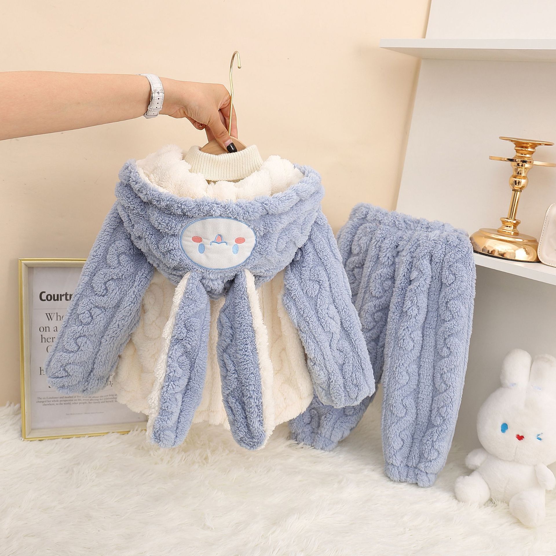 소녀 홈 옷 2024 가을과 겨울 새로운 스타일 아기 소녀 귀여운 후드 슈퍼 소프트 두꺼운 벨벳 파자마 투피스 세트
