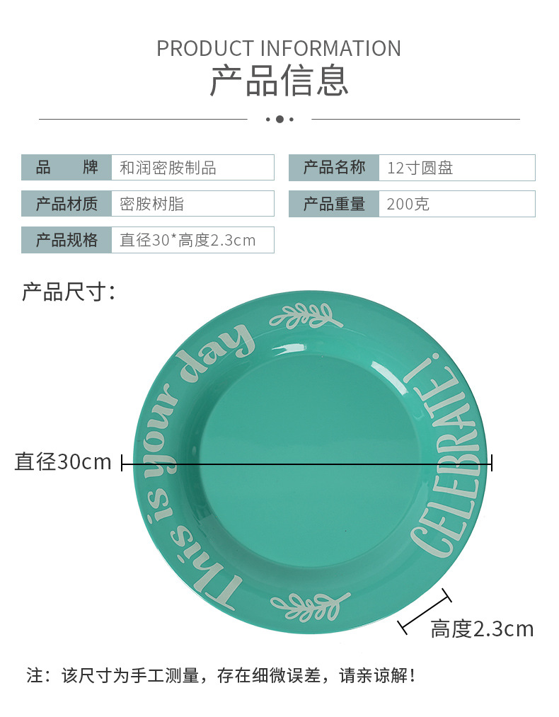 12 인치 디스크 직경 30cm 평판 대외 무역 스타일 과일 플레이트 냉판 멜라민 식품 등급 재료스토어 가기