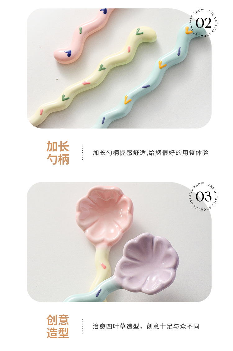 세라믹 긴 손잡이 스푼 가정용 디저트 스푼 귀여운 Ins 스타일 혼합 스푼 커피 스푼 마카롱 아이스크림 스푼스토어 가기