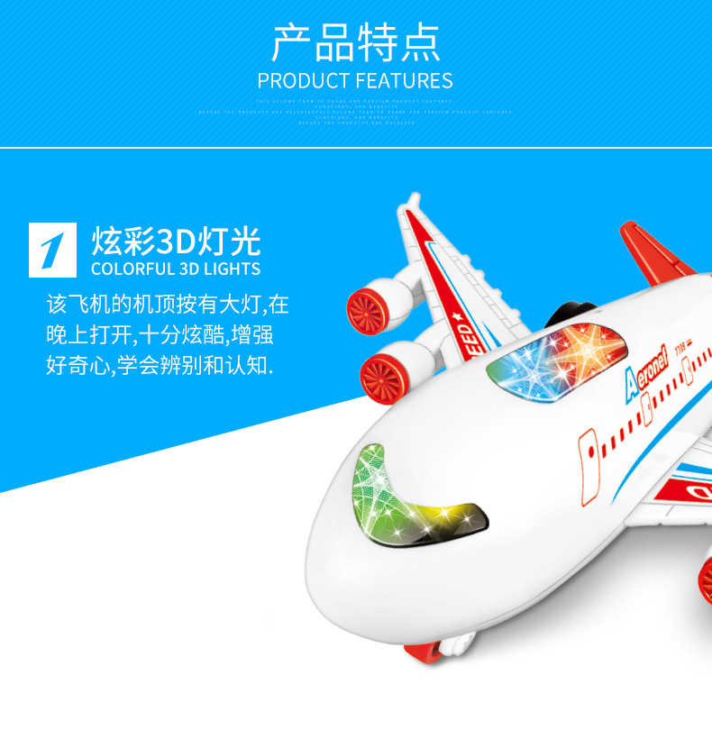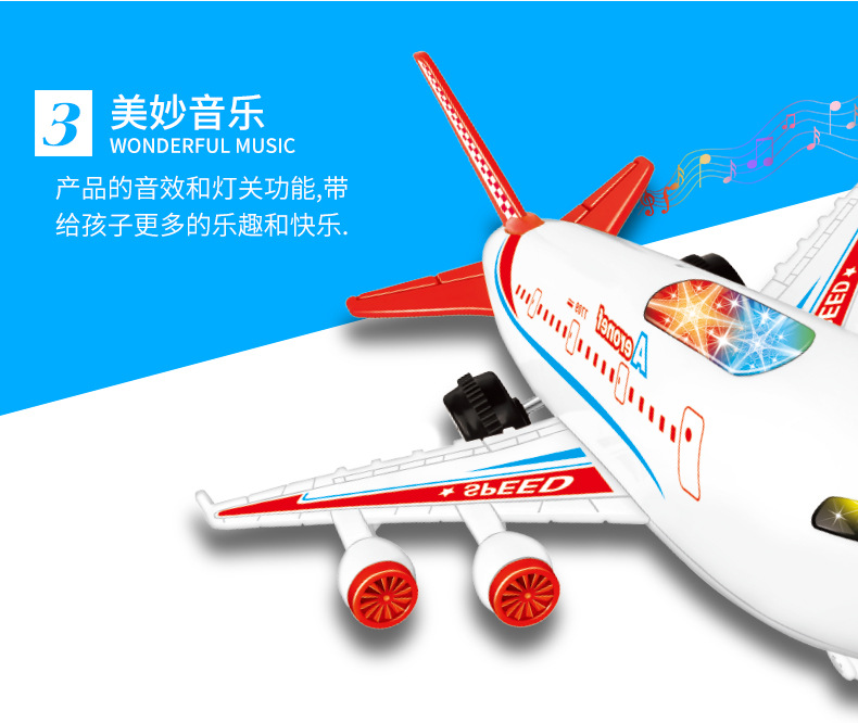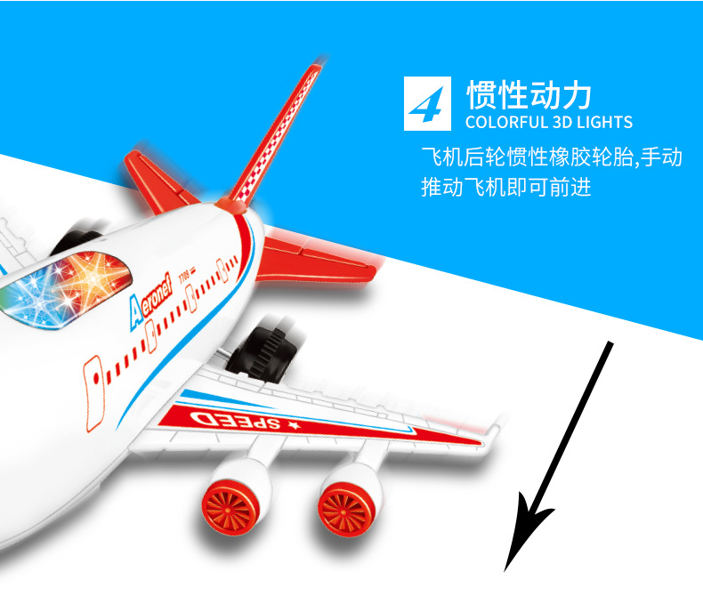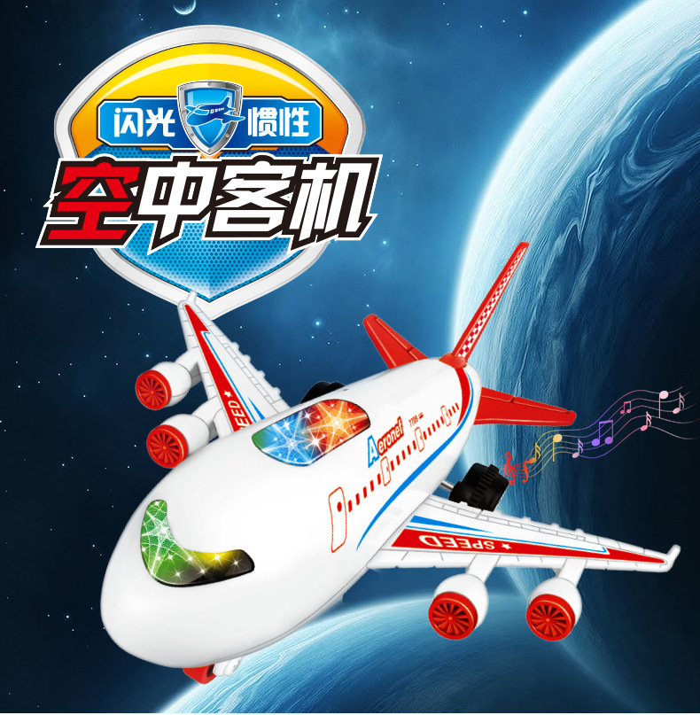 국경 간 시뮬레이션 모델 플래시 여객기 전기 어린이 장난감 음악 관성 힘 항공기 장난감 도매스토어 가기