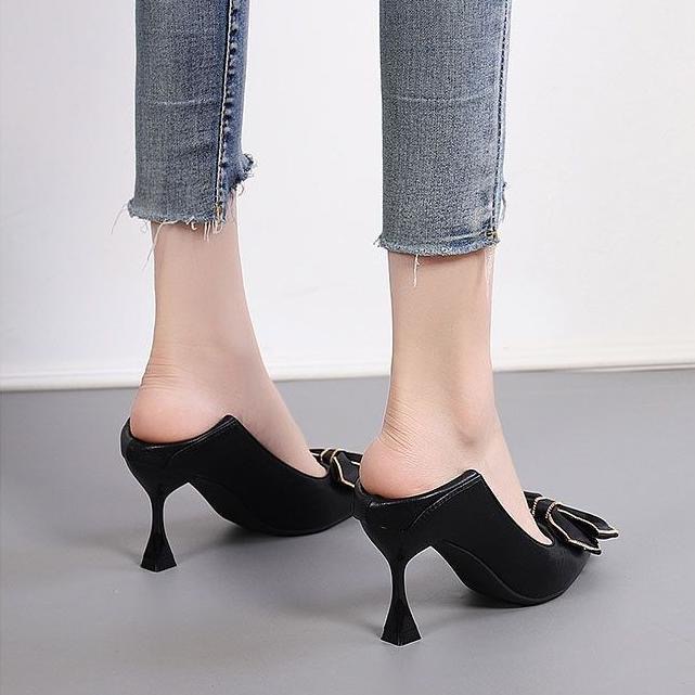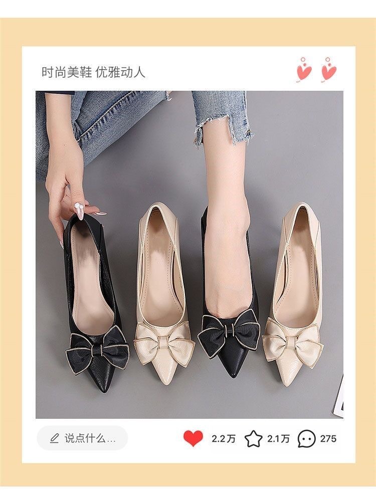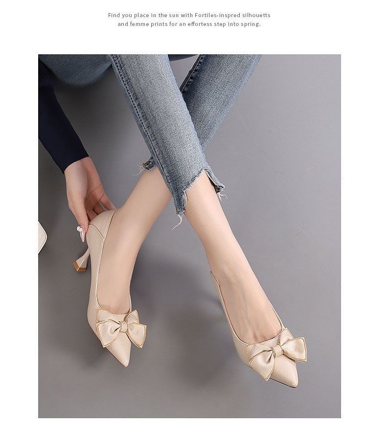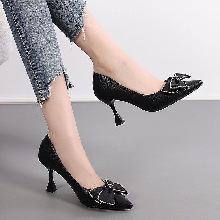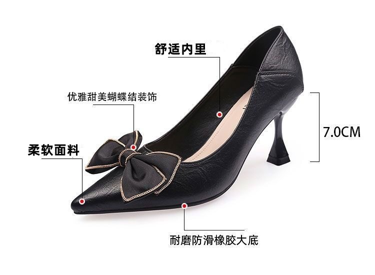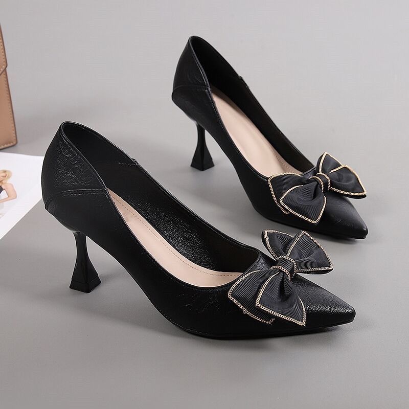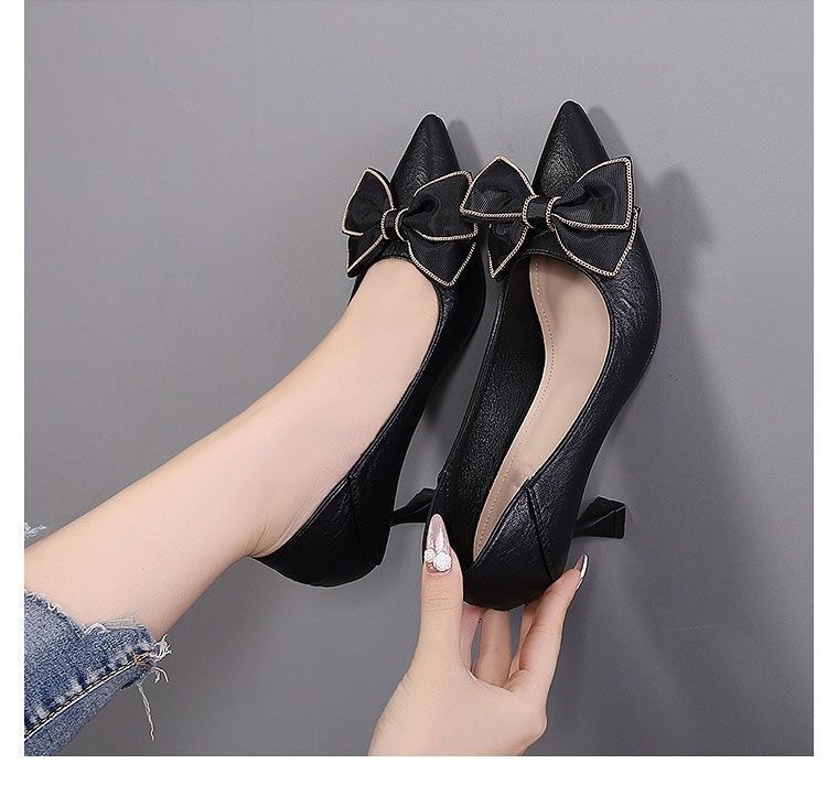 2024 싱글 레이어 신발 여성의 섹시한 활 겉옷 전문 작업 신발 봄과 가을 새로운 올 매치 뾰족한 스틸레토 힐 신발 여성스토어 가기