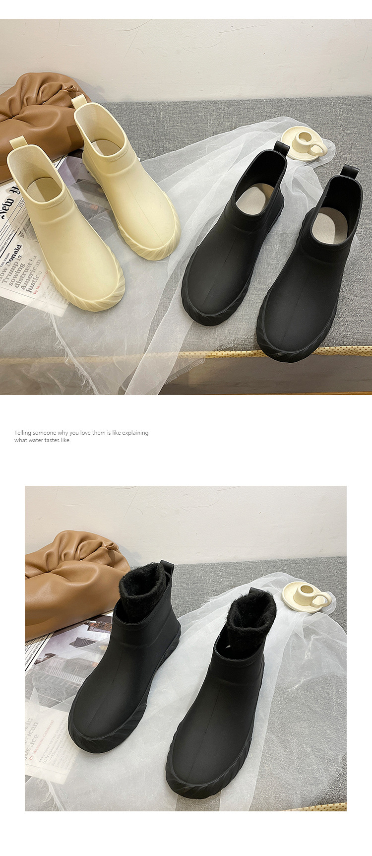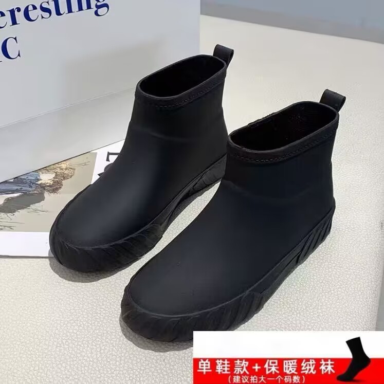 새로운 패션 내한성 장화 여성의 짧은 따뜻한 여성 장화 낮은 탑 워터 부츠 방수 내마모성 기모 부드러운 고무 신발