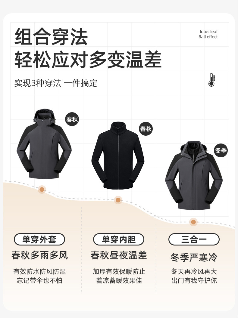 카멜 HJCAMEL 3 대 1 투피스 야외 재킷 방풍 커플 등산 세트 야외 재킷스토어 가기