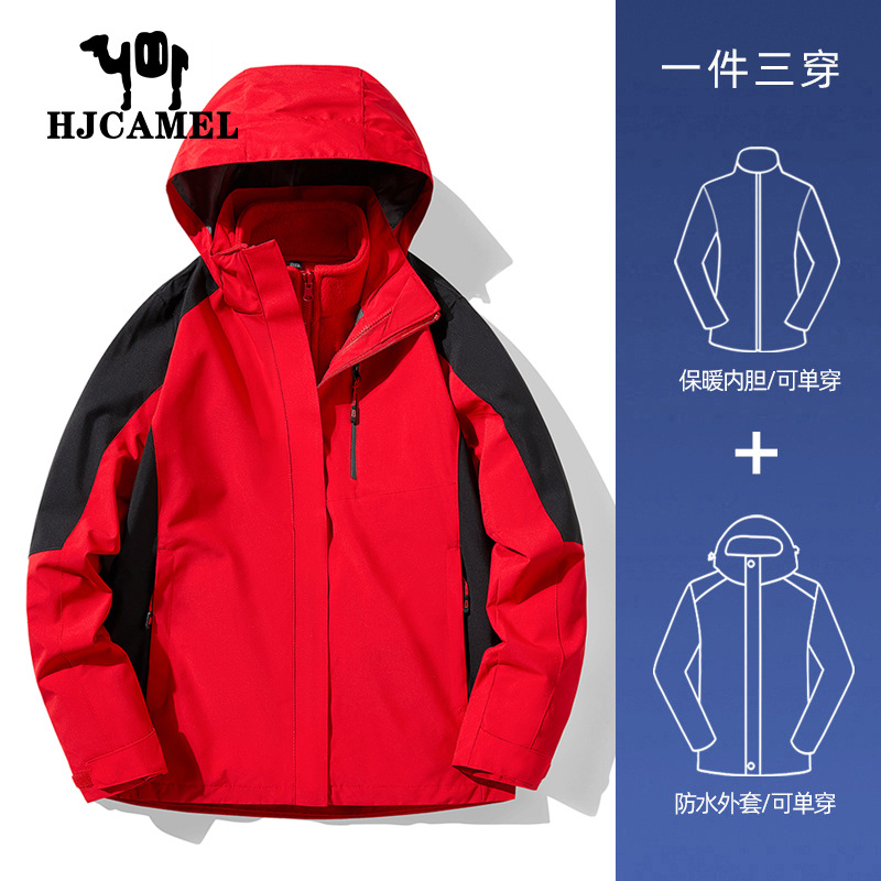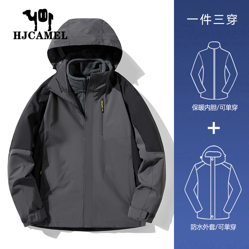 카멜 HJCAMEL 3 대 1 투피스 야외 재킷 방풍 커플 등산 세트 야외 재킷