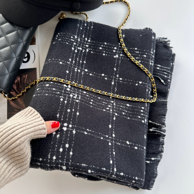 Xiaoxiang 짠 격자 무늬 양모 스카프 여성의 겨울 부드러운 왁스 두꺼운 따뜻한 초대형 긴 격자 무늬 OL 여성용 목도리스토어 가기