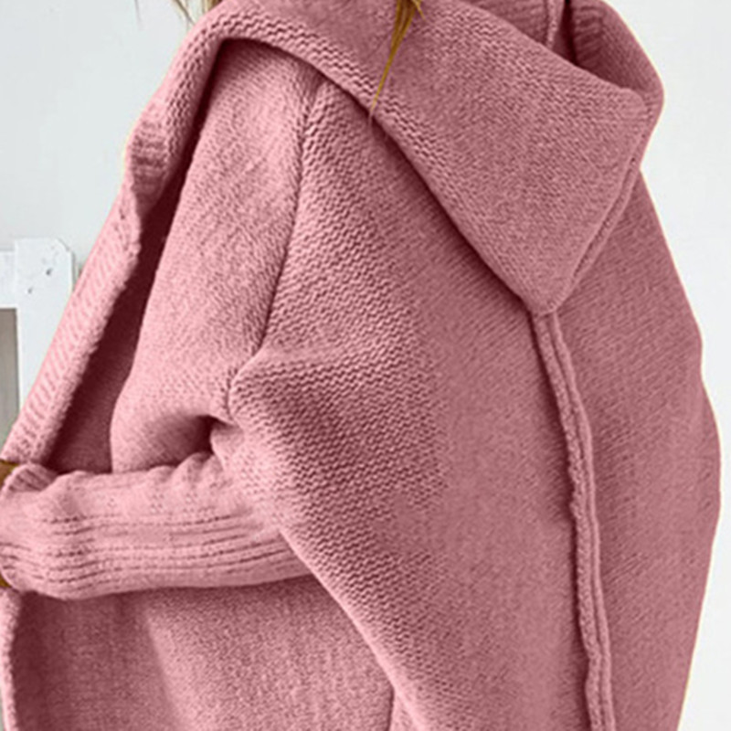 2025 새로운 후드 스웨터 후드 칼라 기질 통근 박쥐 모양의 부드러운 느슨한 백 스플 라이스 스웨터 스웨터
