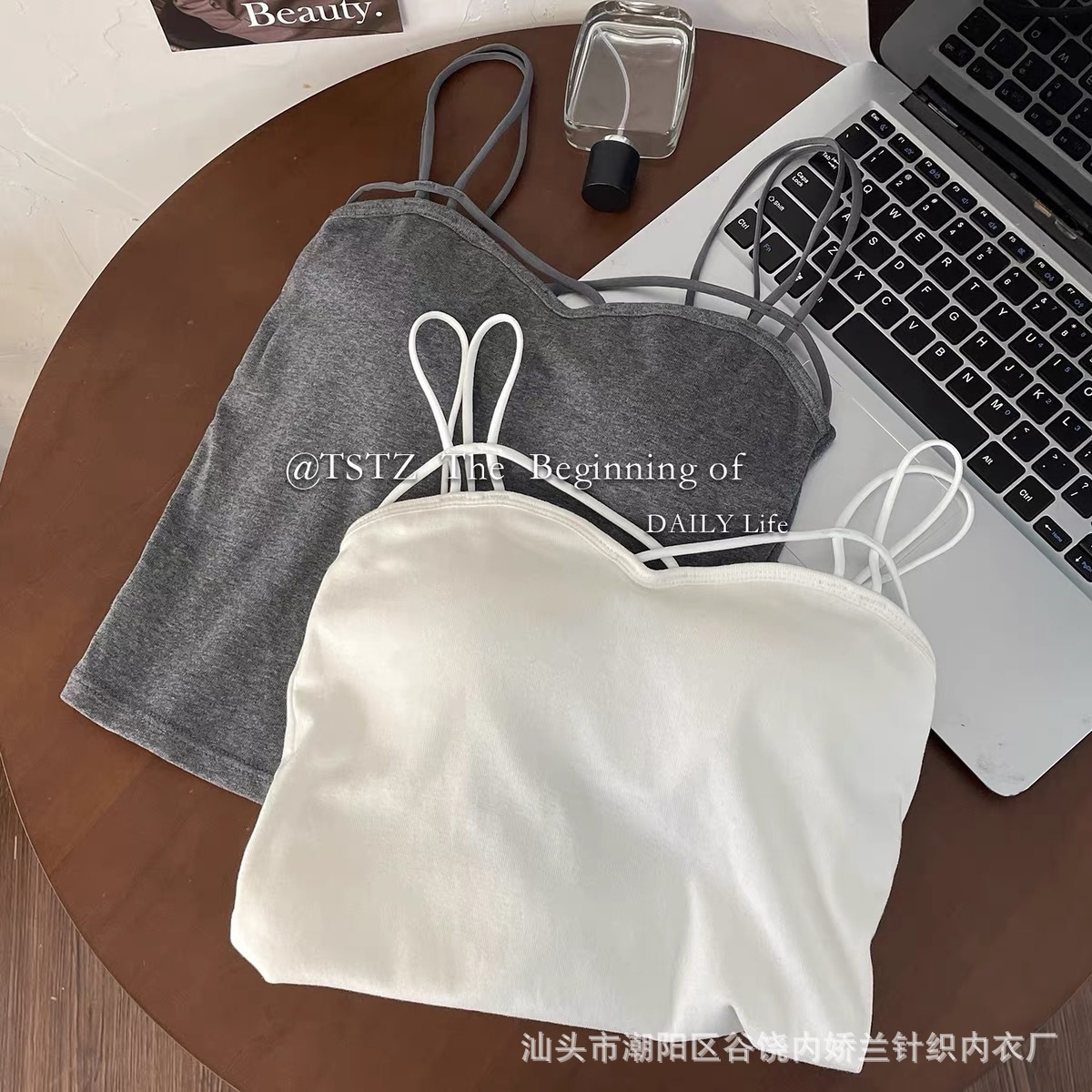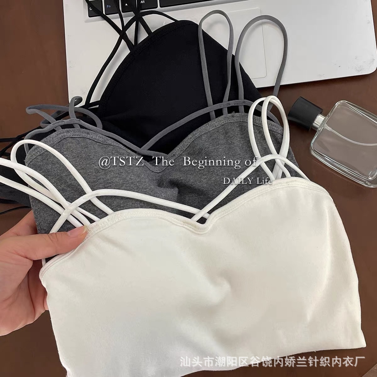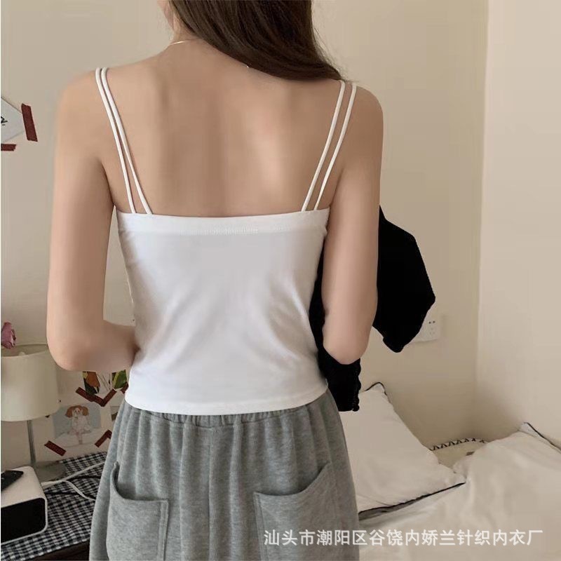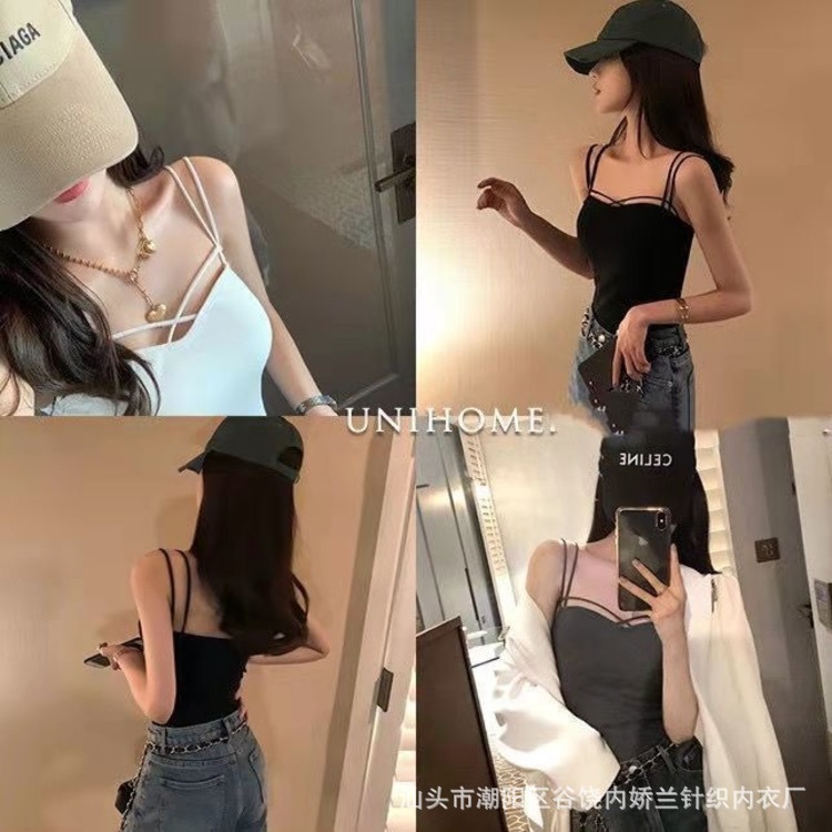 한국식 캐주얼 뷰티 백 여름 새로운 크로스 어깨 캐미솔 다재다능한 단색 조끼 여성을위한 가슴 패드 탑스토어 가기
