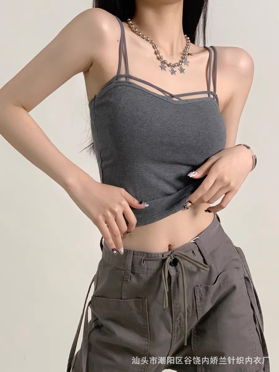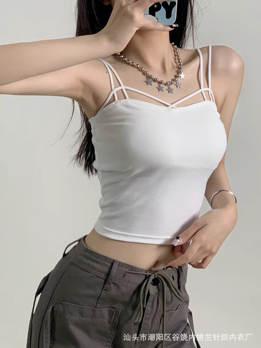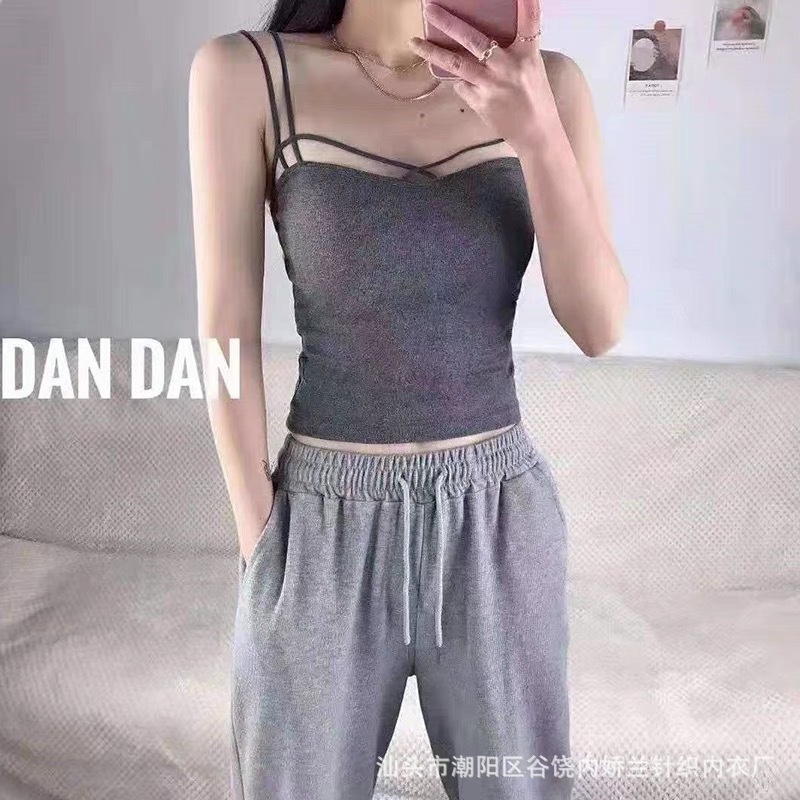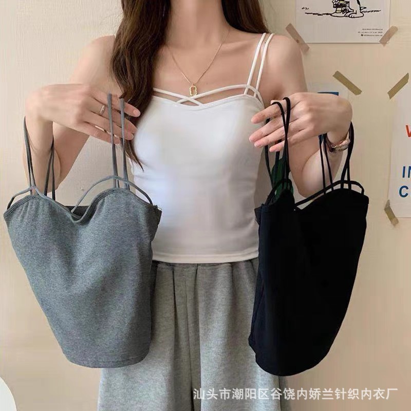 한국식 캐주얼 뷰티 백 여름 새로운 크로스 어깨 캐미솔 다재다능한 단색 조끼 여성을위한 가슴 패드 탑