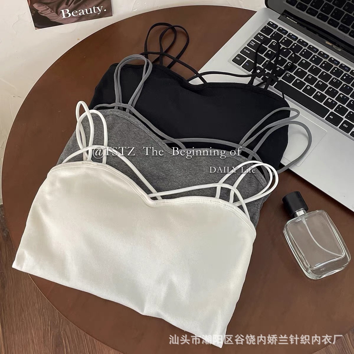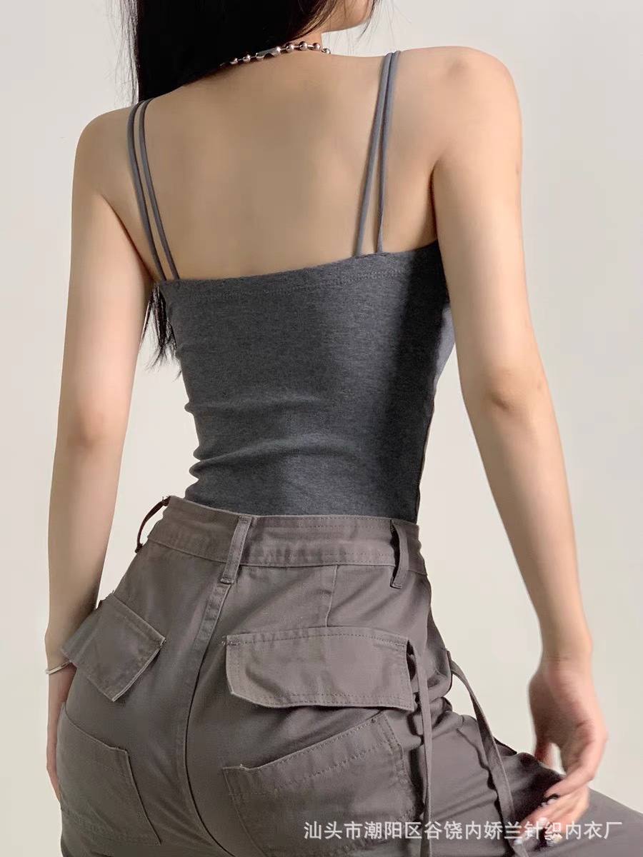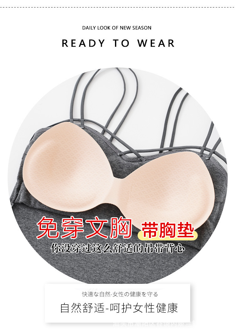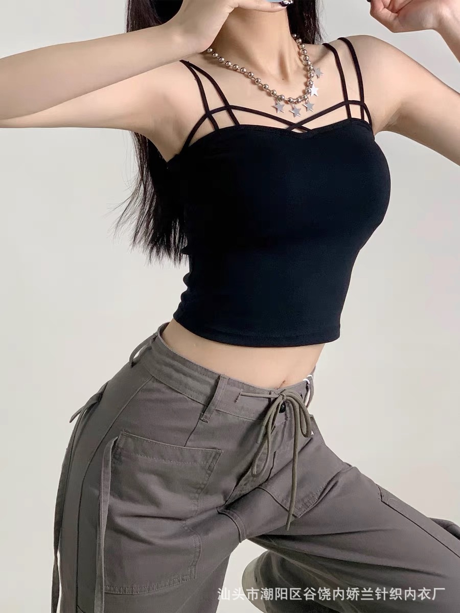한국식 캐주얼 뷰티 백 여름 새로운 크로스 어깨 캐미솔 다재다능한 단색 조끼 여성을위한 가슴 패드 탑
