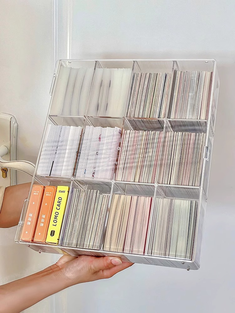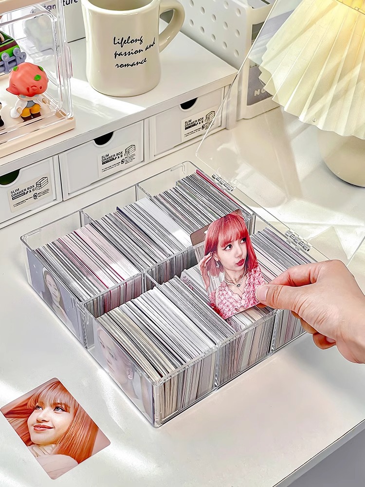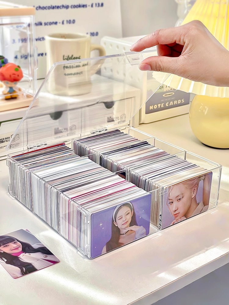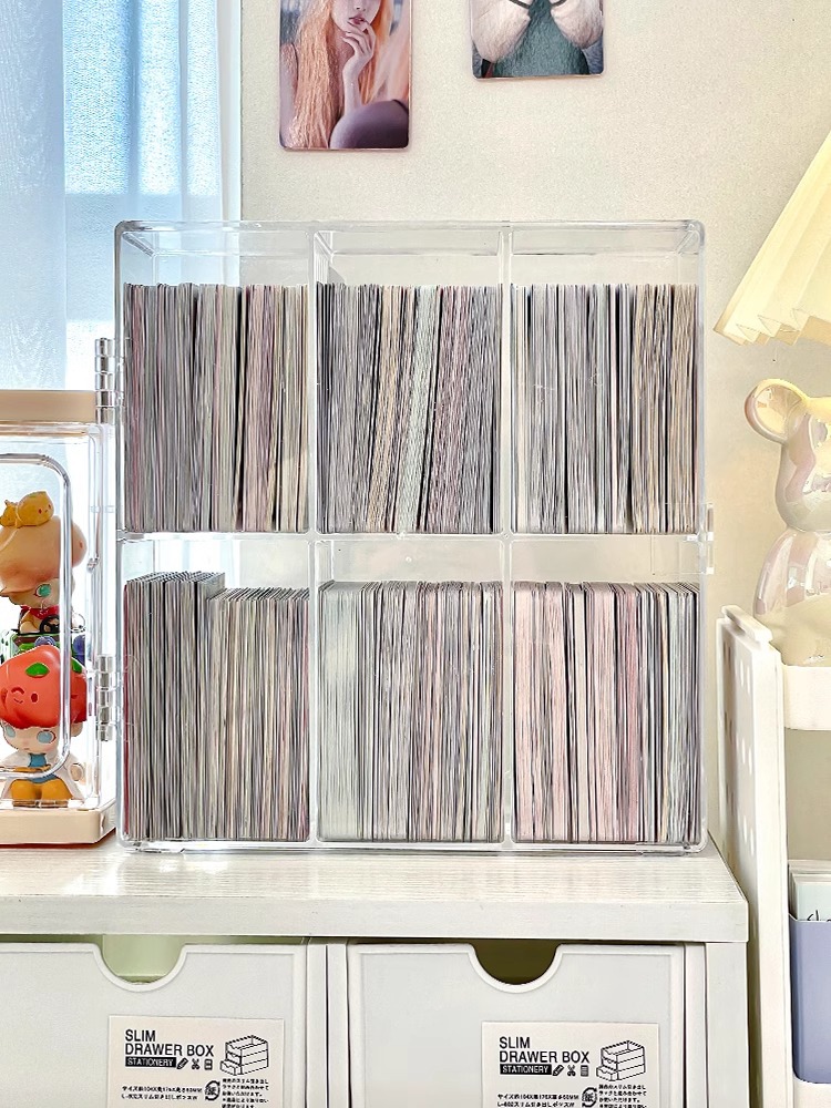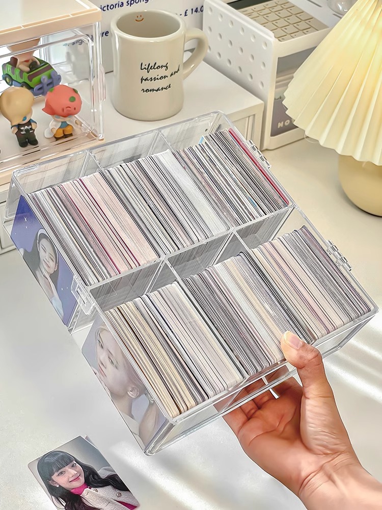 작은 카드 저장 상자 구획 아크릴 투명 상자 카드 홀더 자체 인쇄 작은 카드 울트라 맨 카드 칩 플립 박스스토어 가기