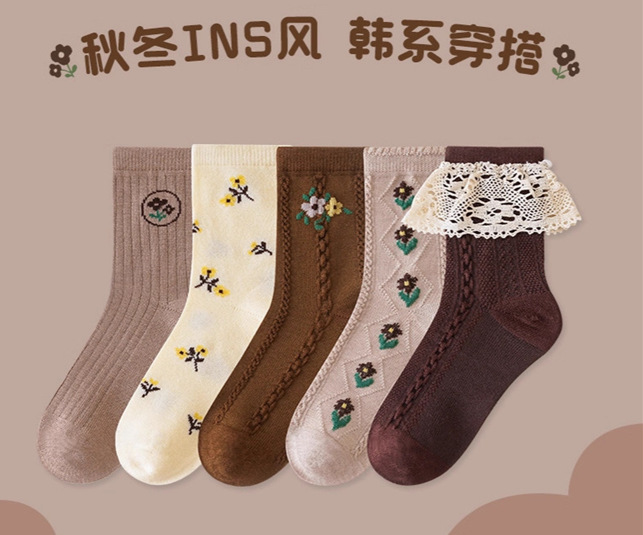 • 레트로 브라운 레이스 [5켤레]