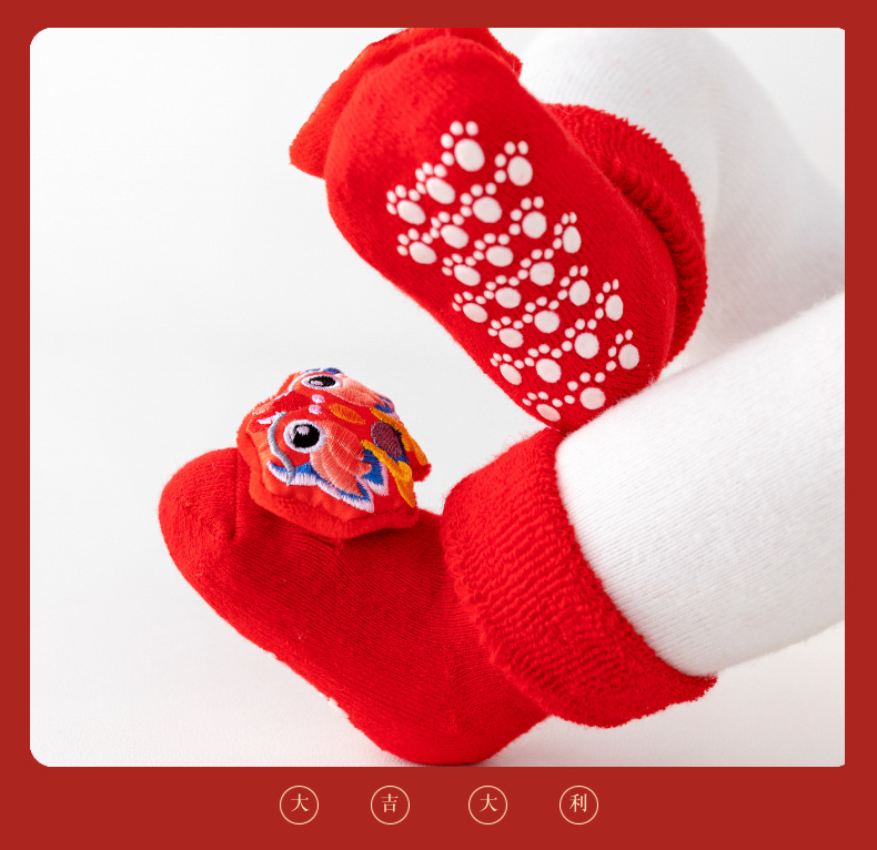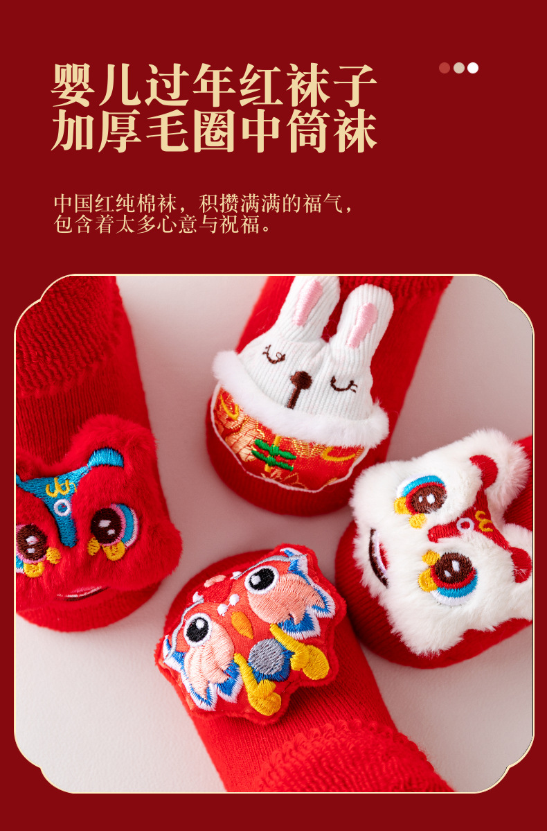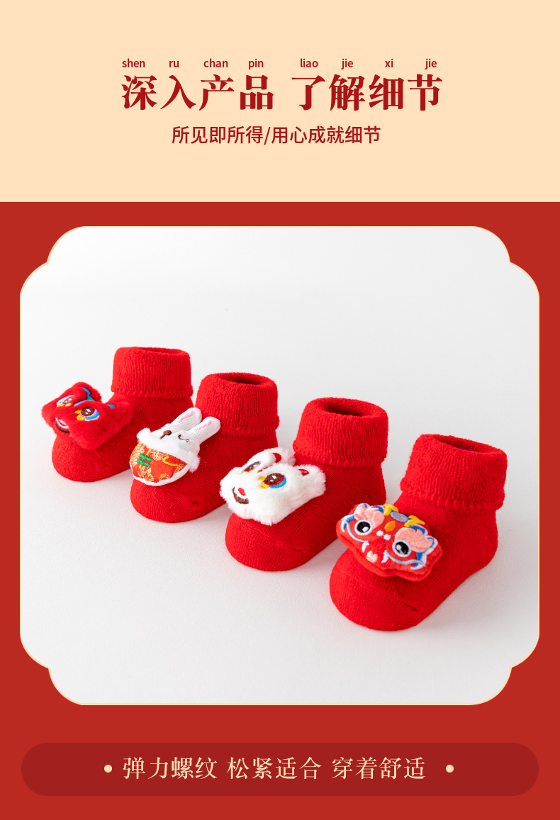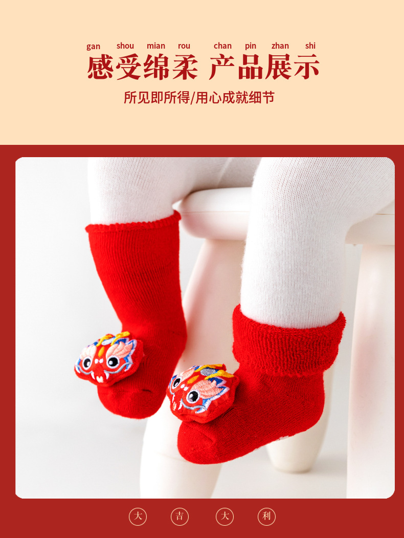 아기 겨울 두껍게 된 따뜻한 면화 중반 종아리 양말 아기 한 달 된 백 태생 샤오 긴 빨간 새해 양말스토어 가기
