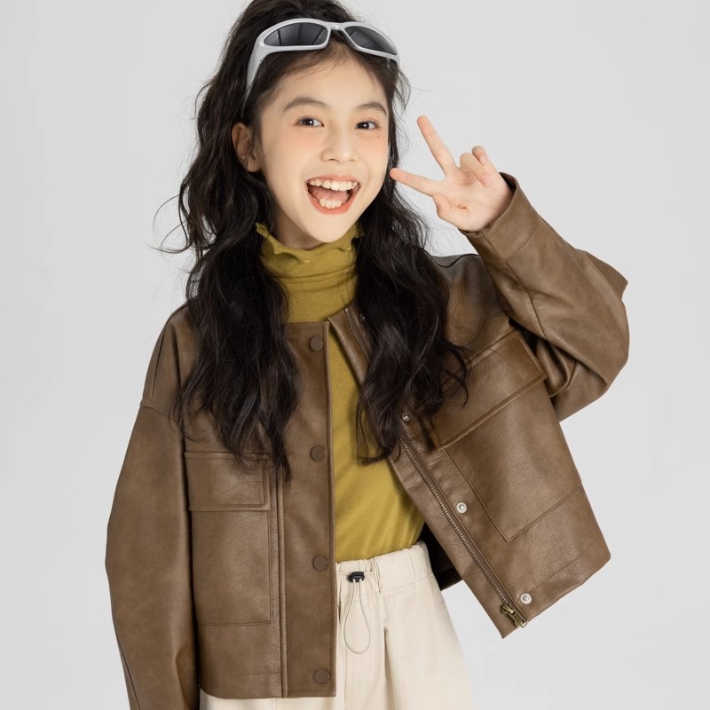 여아 인터넷 스타 유행 코트 2025 봄 가을 신상 아동용 짧은 가죽 재킷 중대형 아동용 스타일리쉬 상의 트렌디스토어 가기