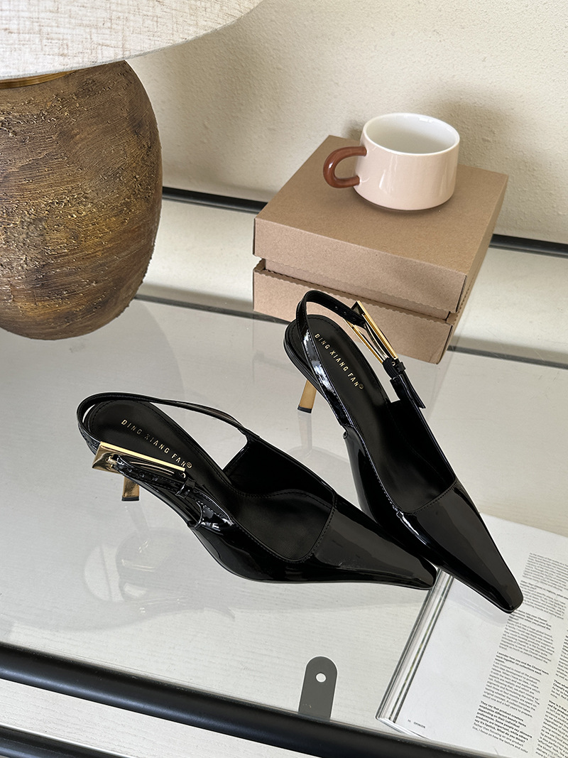 2024 봄 새로운 닫힌 발가락 스트랩 샌들 여성용 스틸레토 힐 얕은 입 신발 작은 사각형 뾰족한 기질 하이힐스토어 가기
