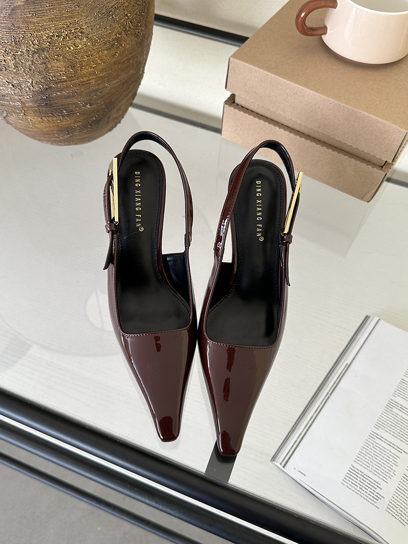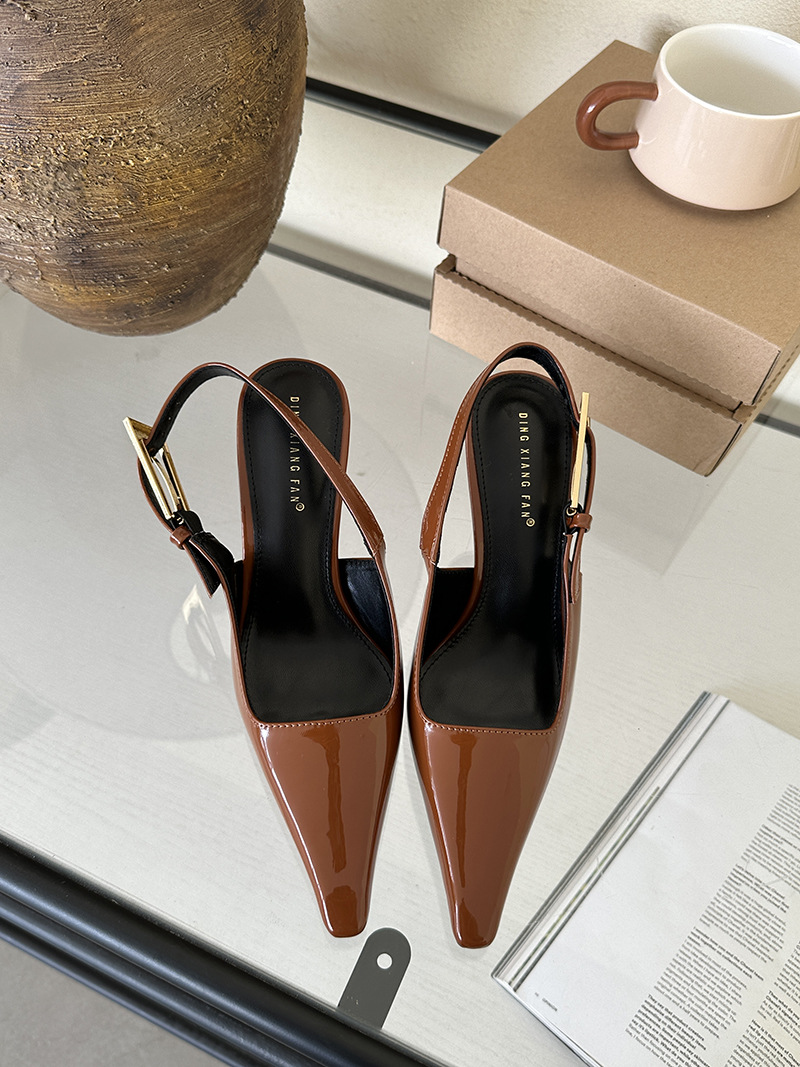 2024 봄 새로운 닫힌 발가락 스트랩 샌들 여성용 스틸레토 힐 얕은 입 신발 작은 사각형 뾰족한 기질 하이힐