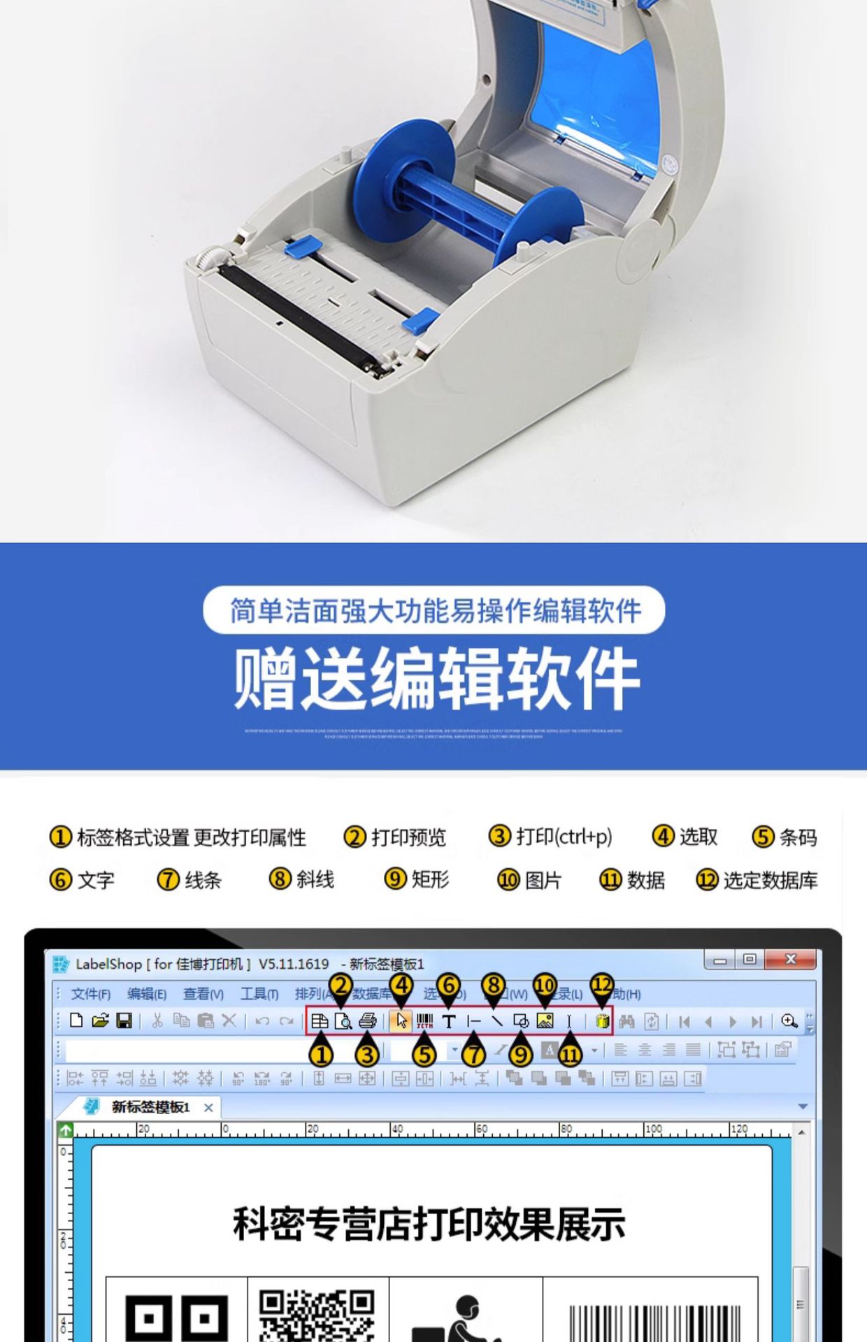 Jiabo 열 바코드 프린터 GP-1924D/1324D/1334D 라벨 기계 블루투스 접착 스티커