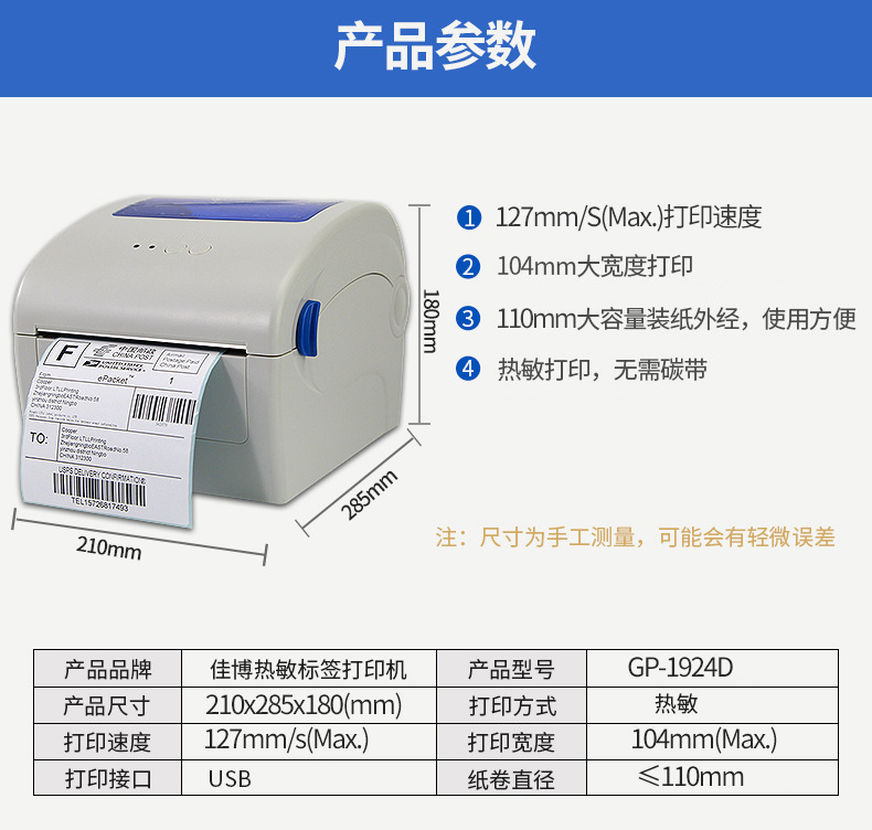 Jiabo 열 바코드 프린터 GP-1924D/1324D/1334D 라벨 기계 블루투스 접착 스티커스토어 가기