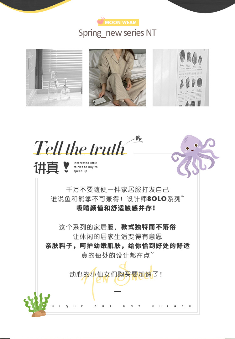 2026년 프랑스 스타일 심플 스트라이프 긴팔 잠옷 여성 캐주얼 루즈핏 홈웨어 세트스토어 가기