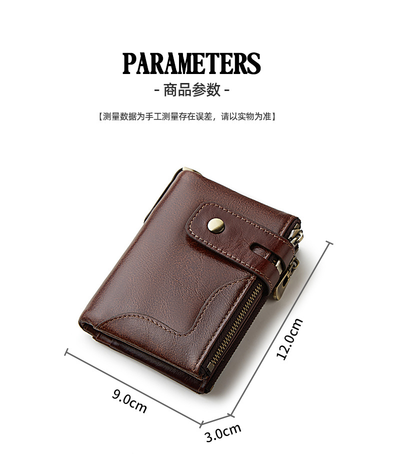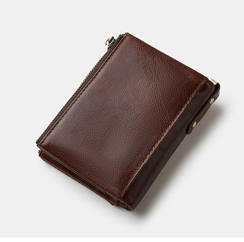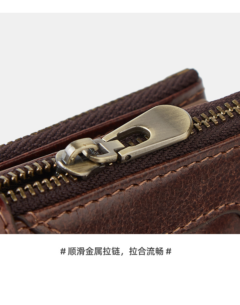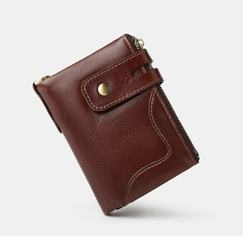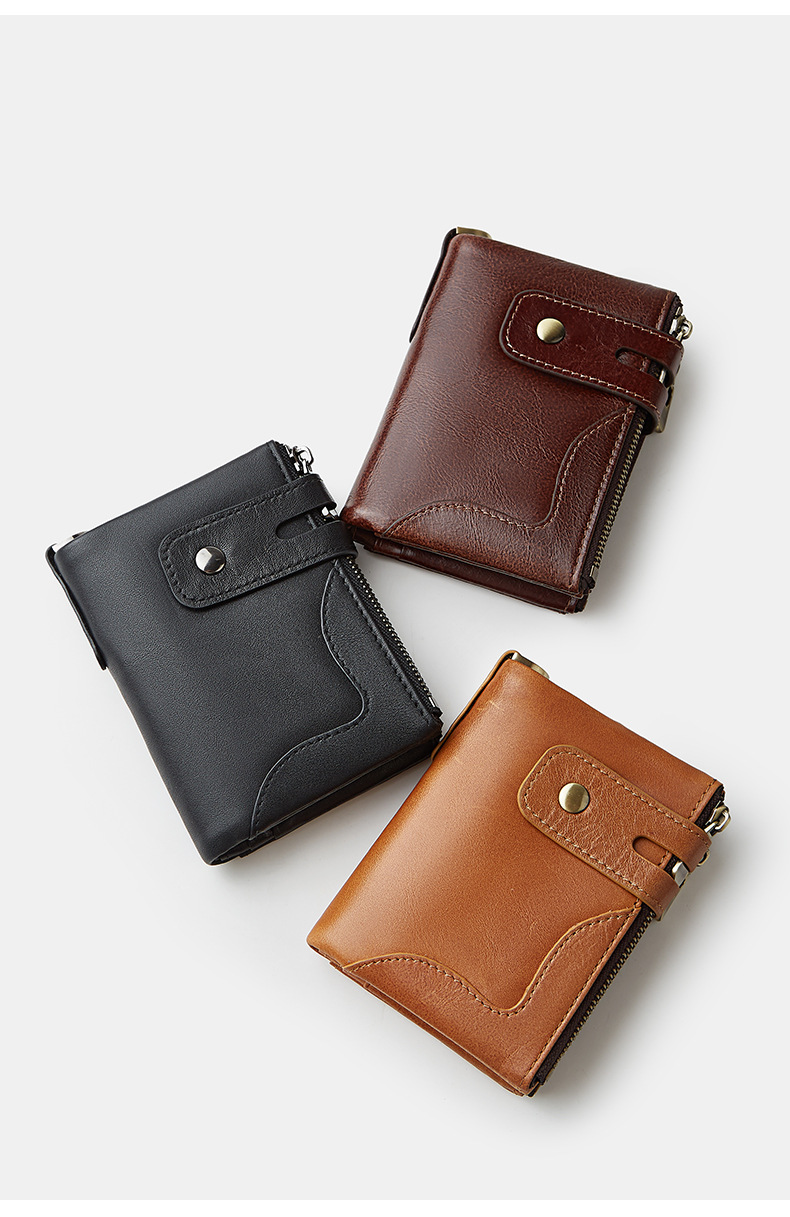 RFID 도난 방지 브러시 지갑 정품 가죽 가방 다기능 버클 지퍼 빈티지 소가죽 남성 가방 캐주얼 동전 지갑 짧은스토어 가기