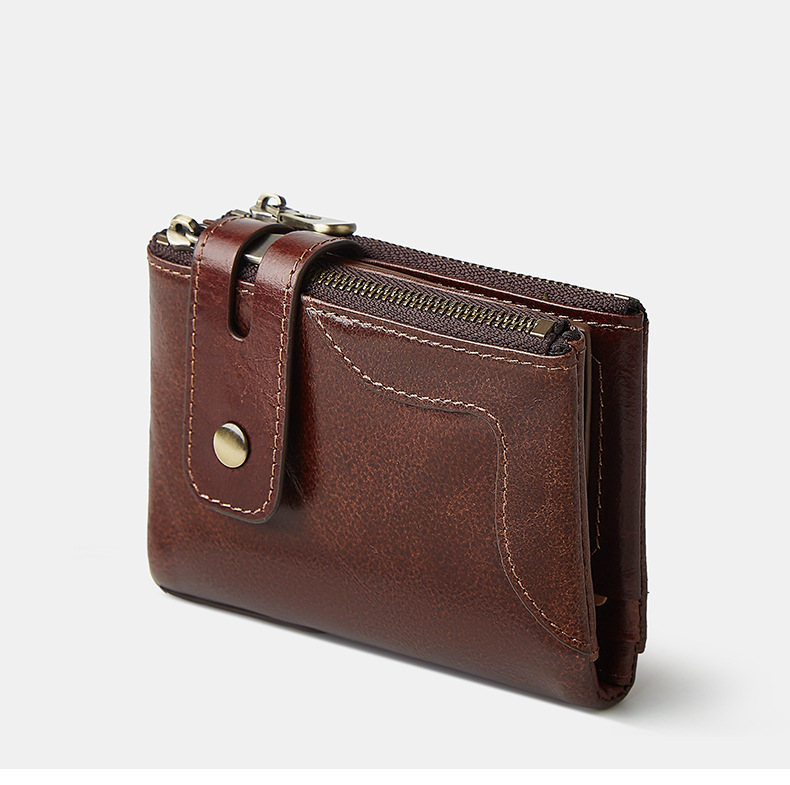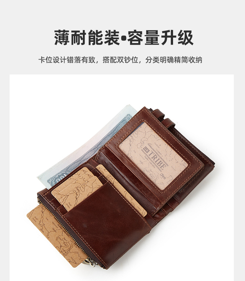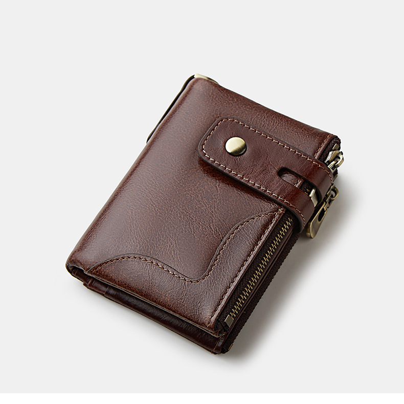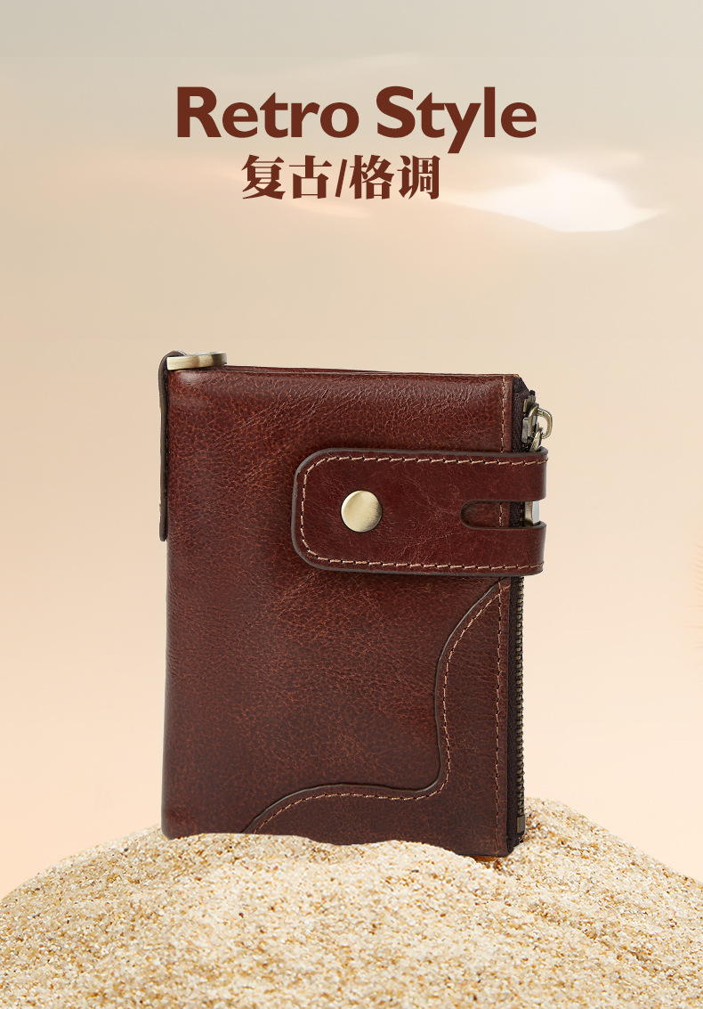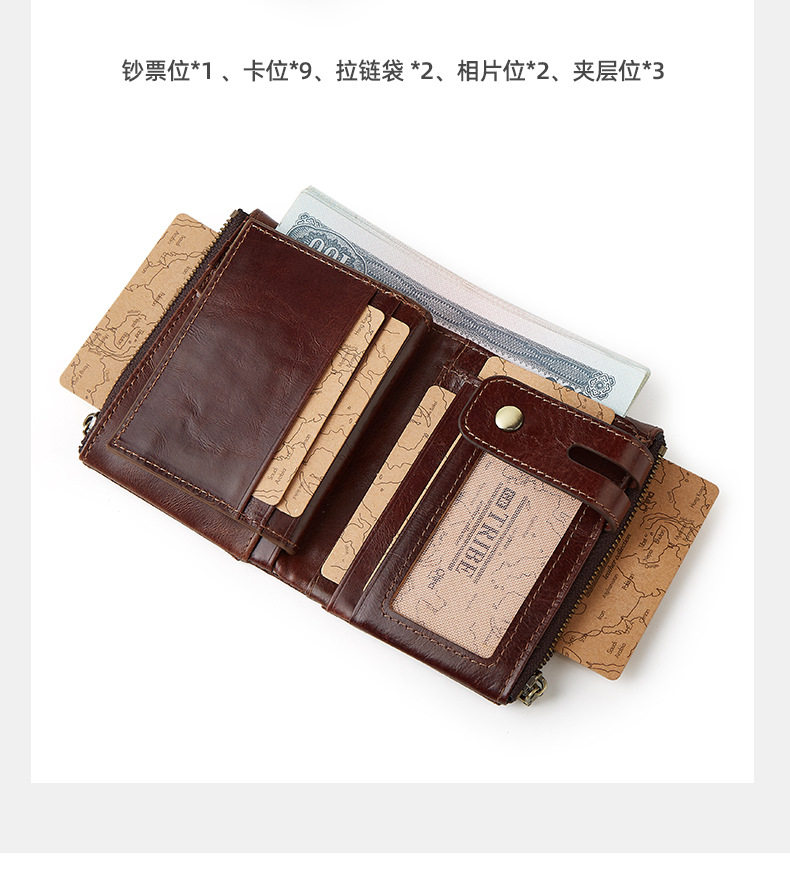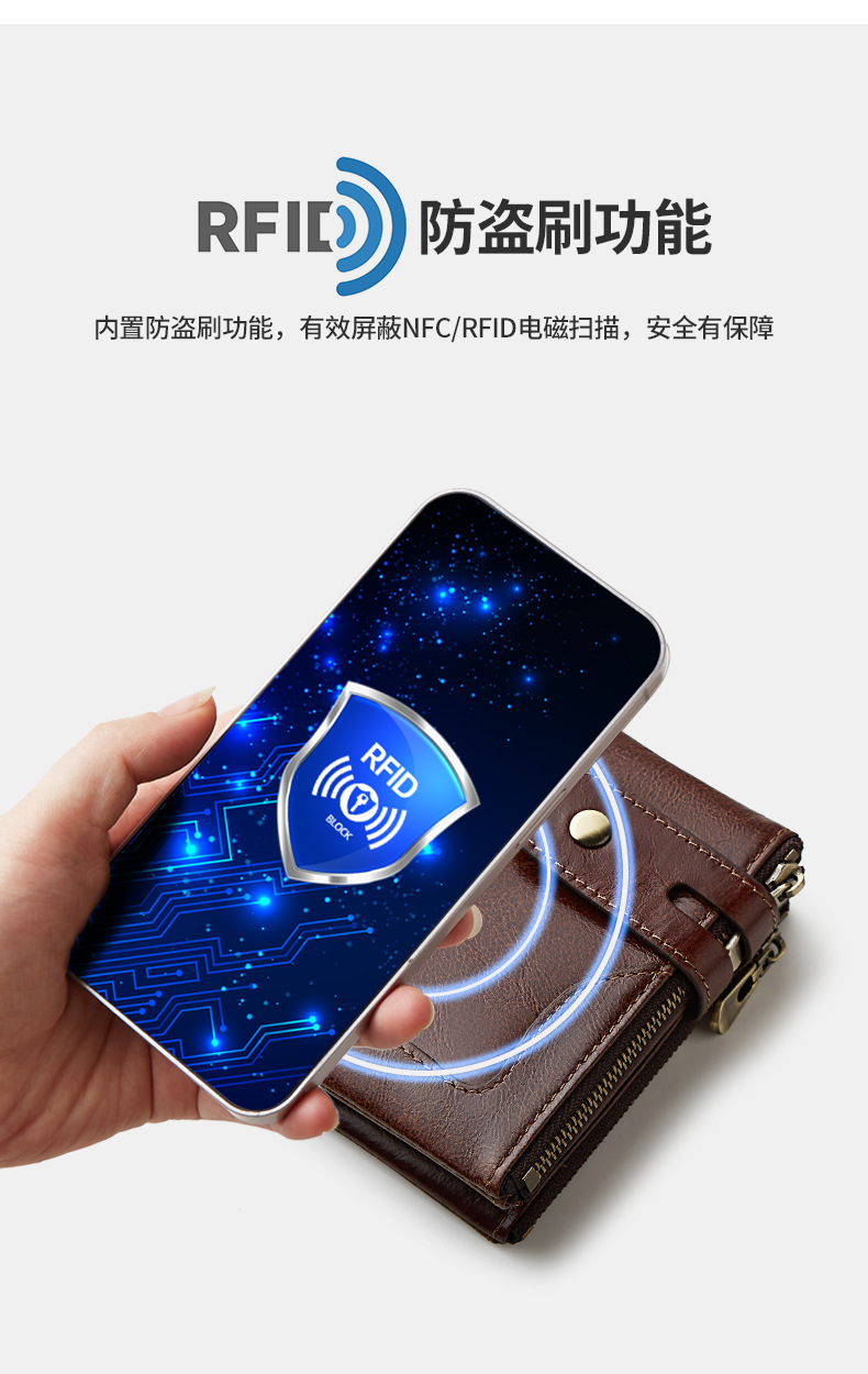 RFID 도난 방지 브러시 지갑 정품 가죽 가방 다기능 버클 지퍼 빈티지 소가죽 남성 가방 캐주얼 동전 지갑 짧은스토어 가기