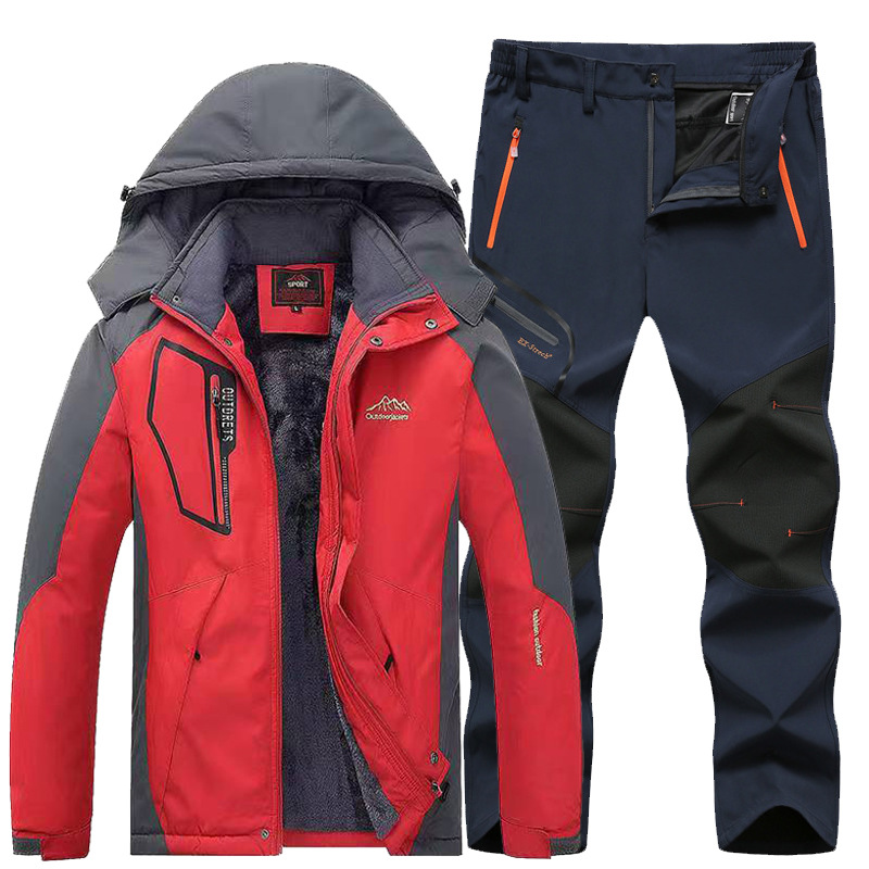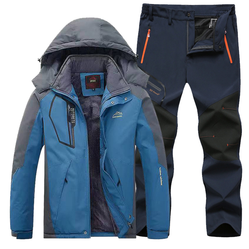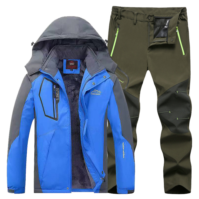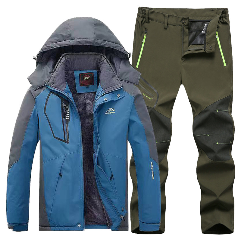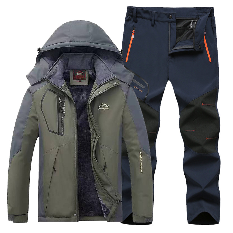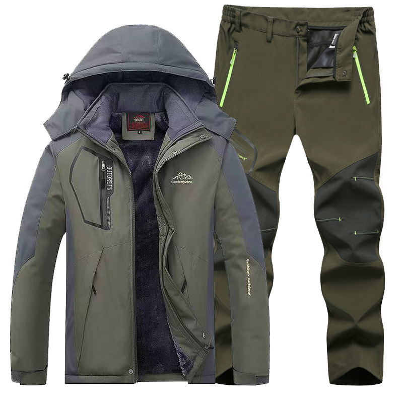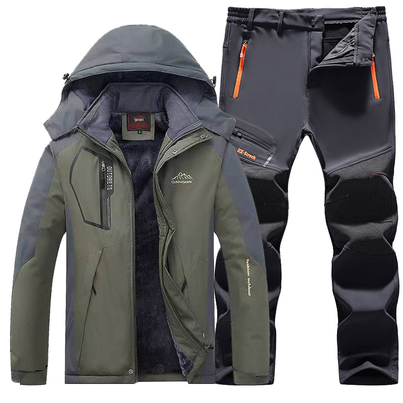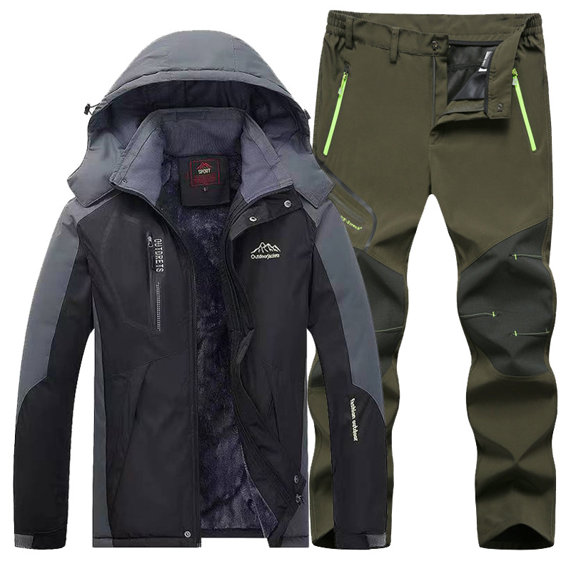 겨울 야외 재킷 남성용 내한성 바지 세트 가을과 겨울 따뜻한 재킷 등산 세트 기모 바지