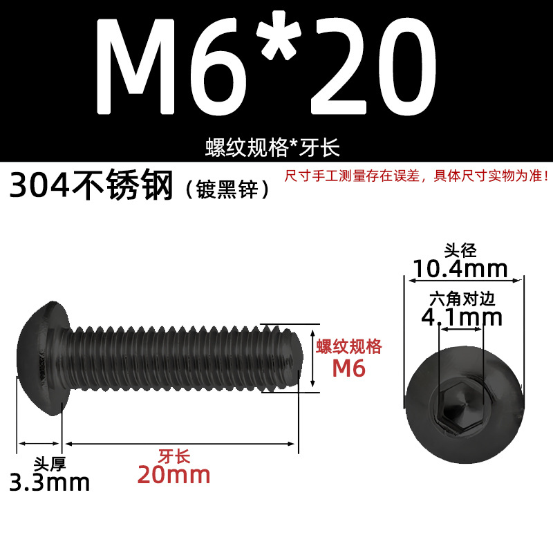 • 라운드 컵 M6 * 20 블랙 아연 (12.9 학년)