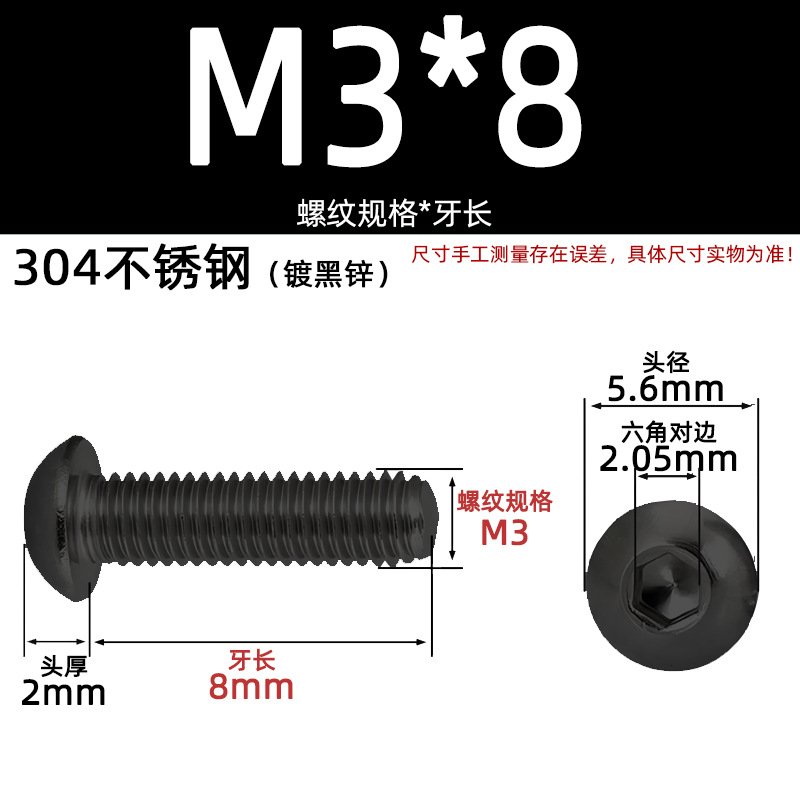 • 라운드 컵 M3 * 8 블랙 아연 (12.9 학년)