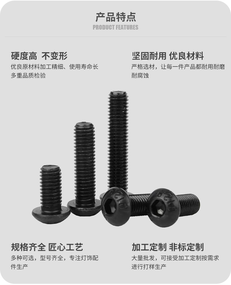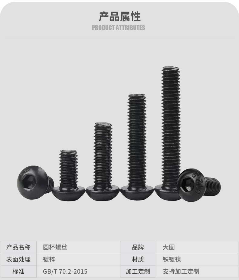 라운드 컵 위안 컵 10.9 등급 블랙 아연 니켈 도금 육각 소켓 플랫 헤드 스크류 기계 와이어 반원형 헤드 GB70.2M2.5스토어 가기