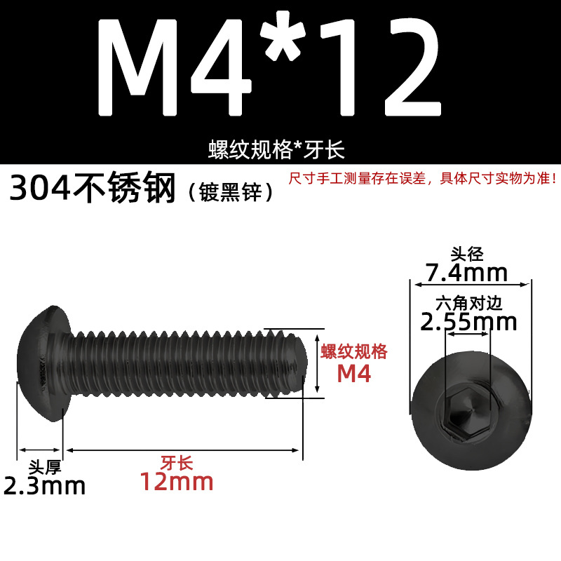 • 라운드 컵 M4 * 12 블랙 아연 (등급 12.9)
