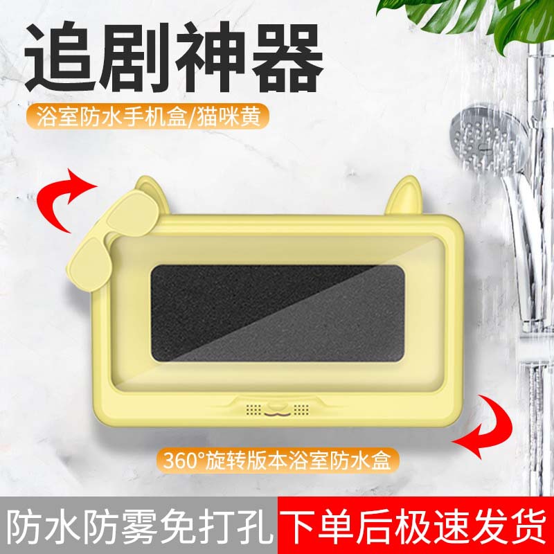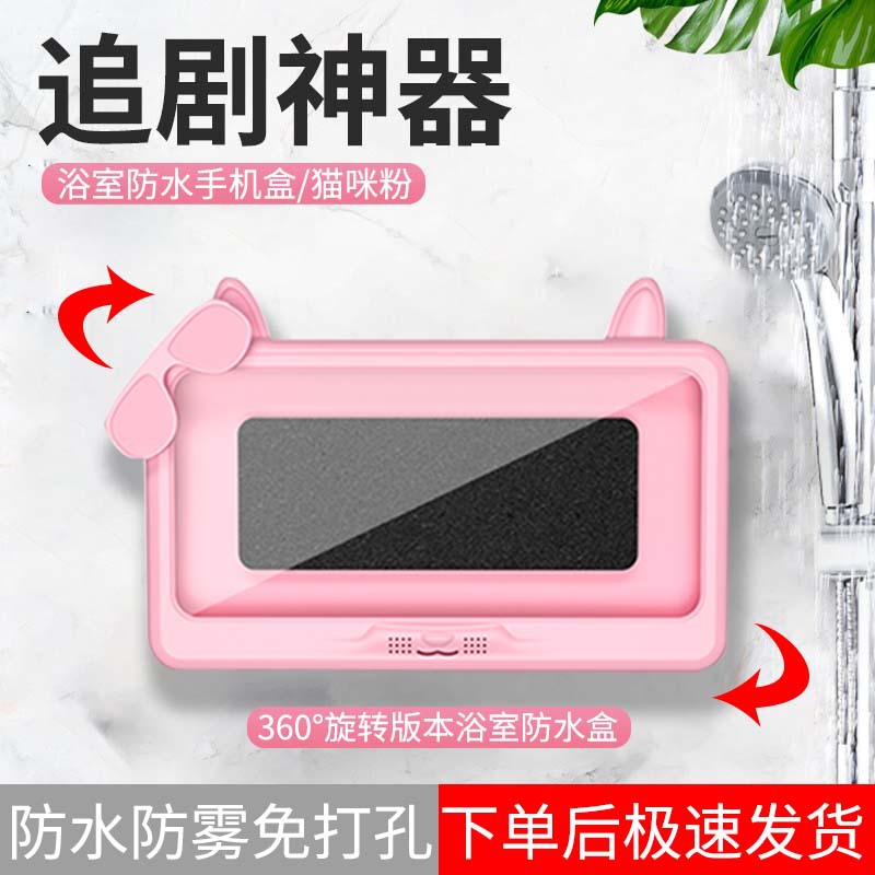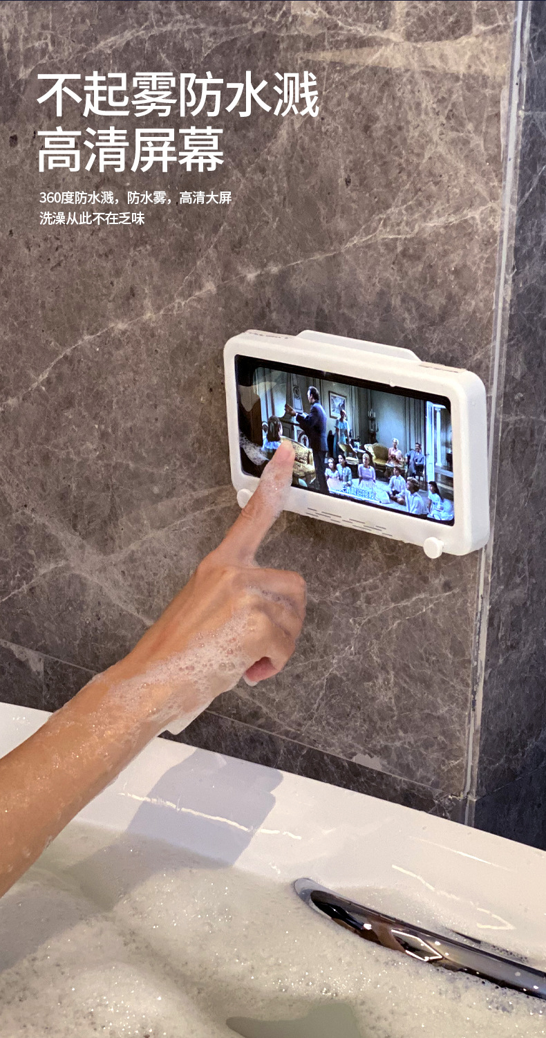 욕실 터치 스크린 방수 휴대 전화 홀더 벽에 장착 된 게으른 목욕 추격 놀이 브래킷 욕실 보관 상자 보관 선반