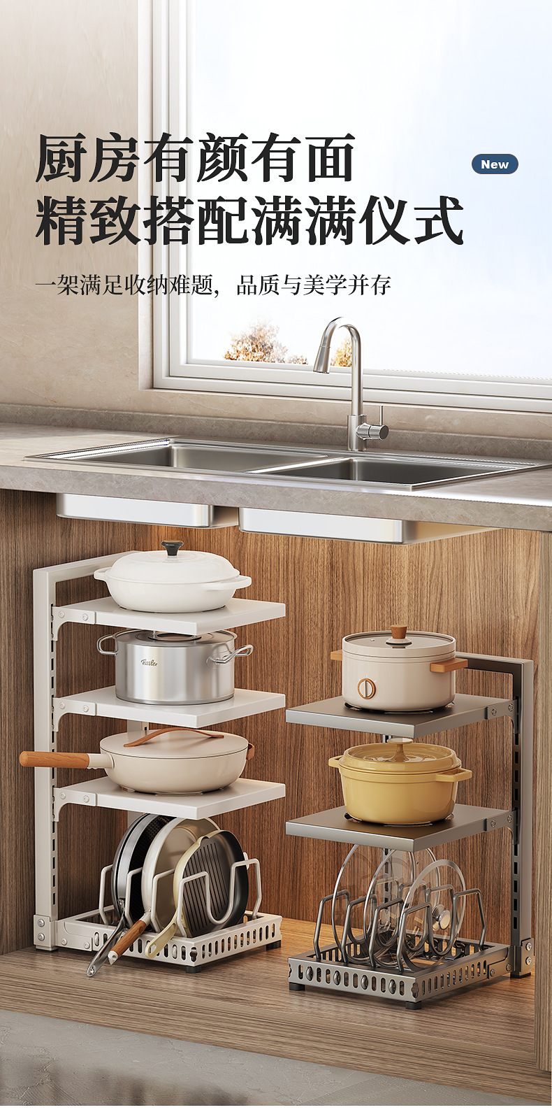 厨房锅架置物架家用台面多功能水槽下橱柜分层放锅架子锅具收纳架