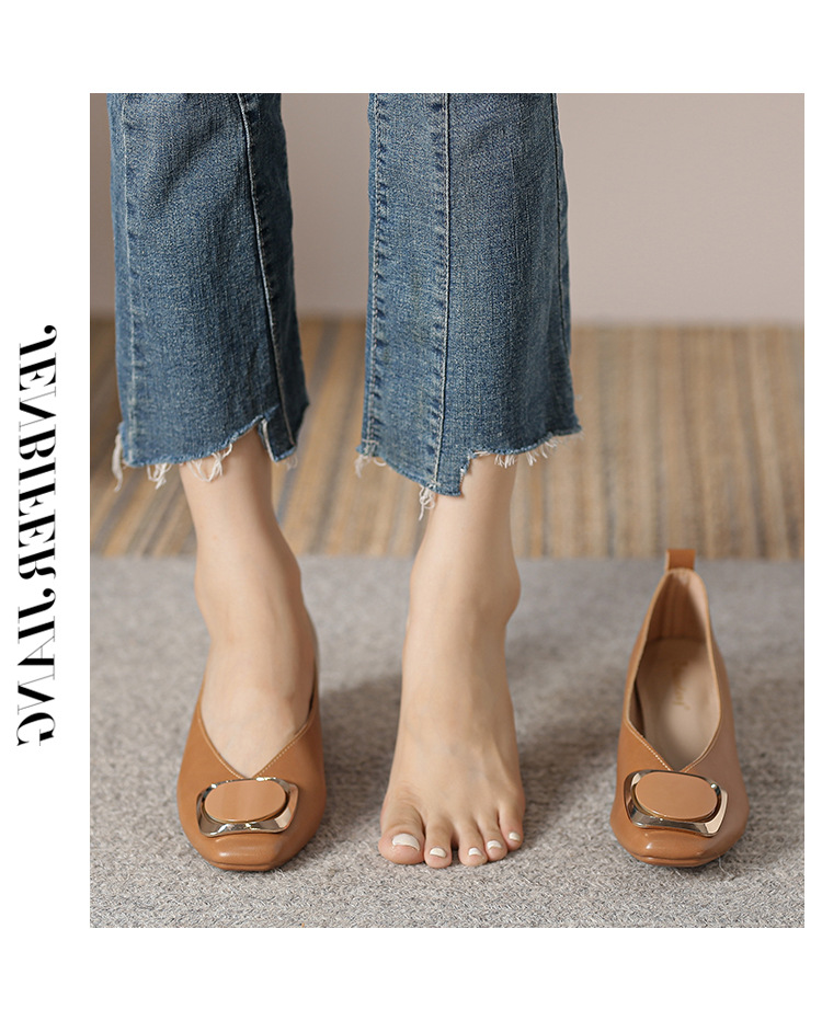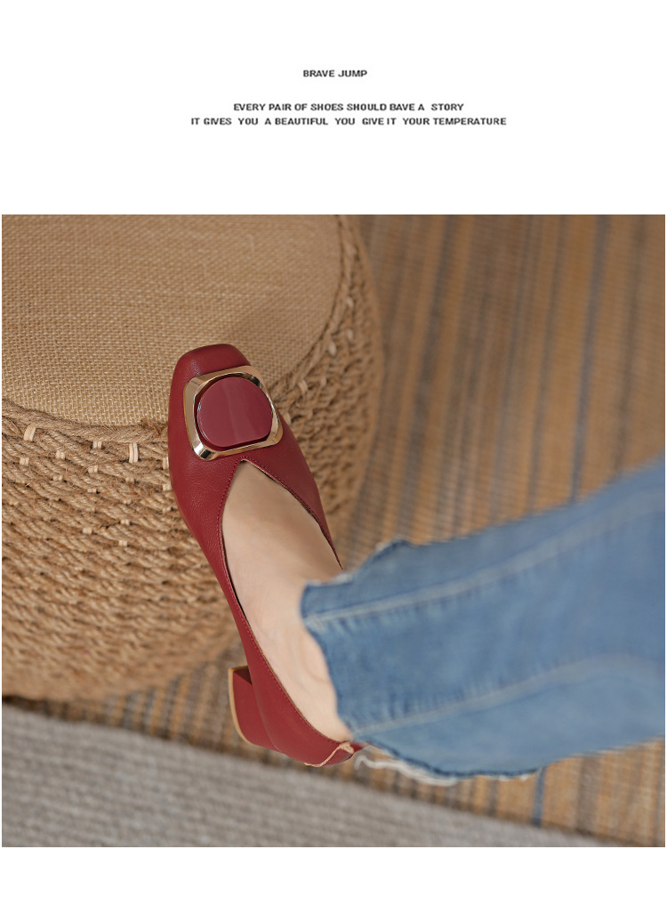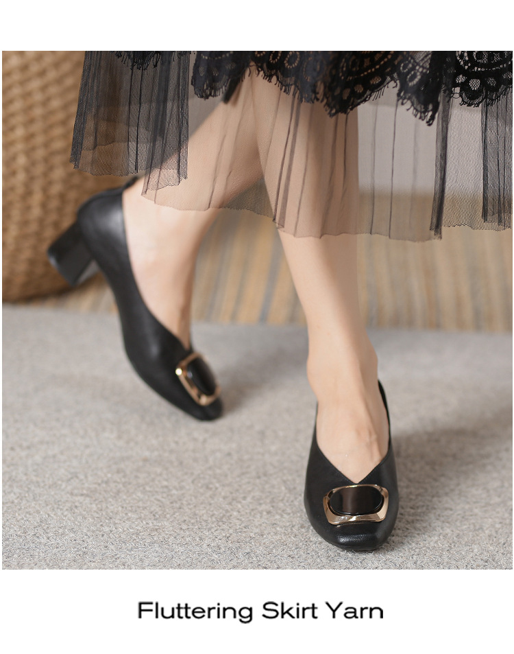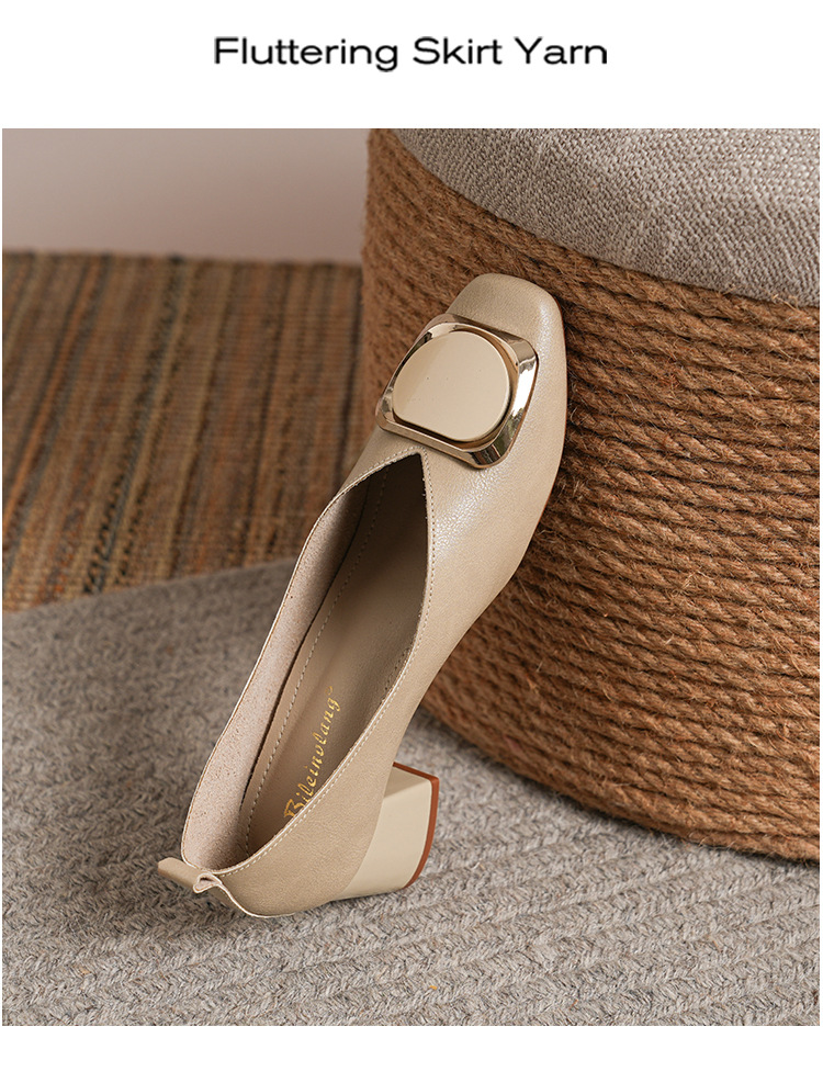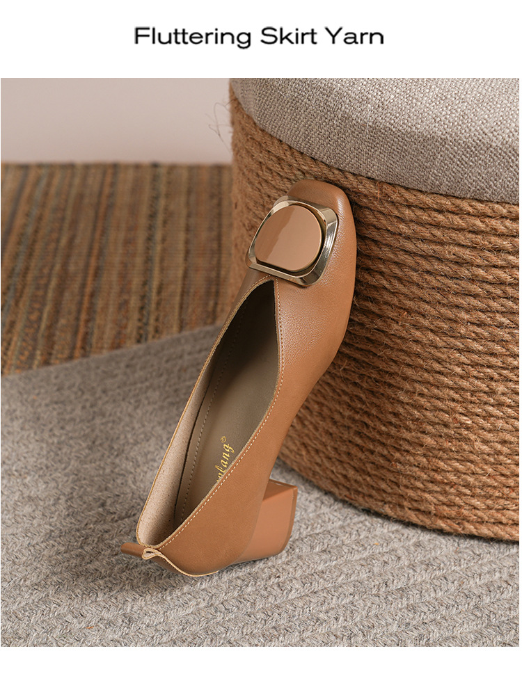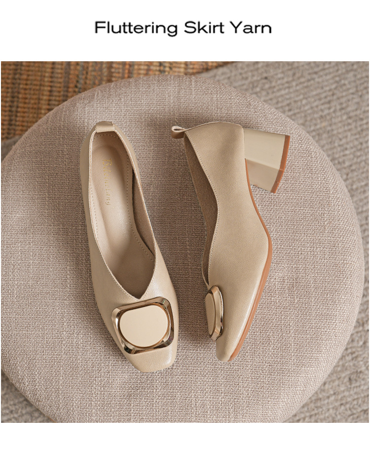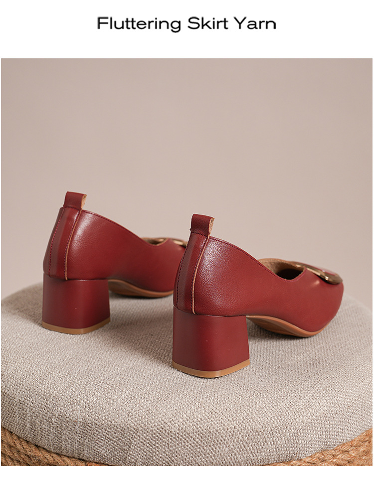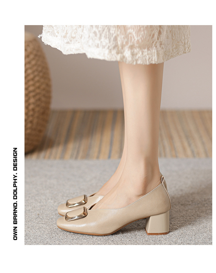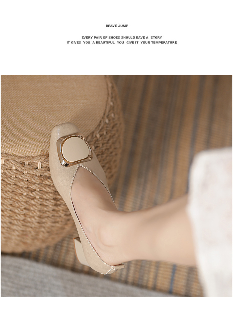 이브닝 스타일 레이디 싱글 레이어 신발 여성 신발 2023 새로운 인기있는 복고풍 통근 소프트 가죽 스퀘어 토 미드 하이힐 할머니 신발스토어 가기