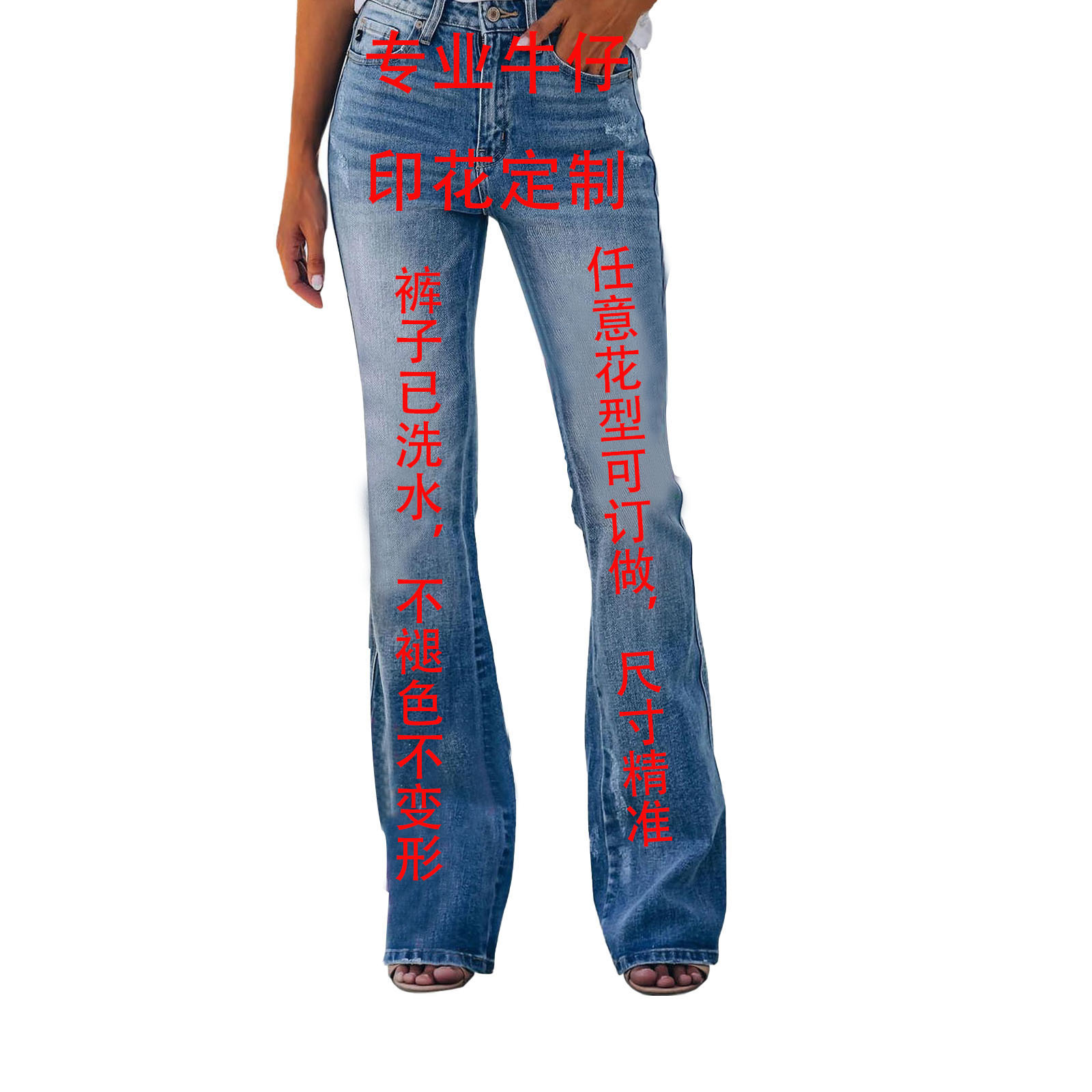 독립 스테이션 2023 국경 간 AliExpress 이베이 유럽과 미국 플러스 사이즈 여성 캐주얼 바지 데님 플레어 바지 꽃 무늬 바지스토어 가기