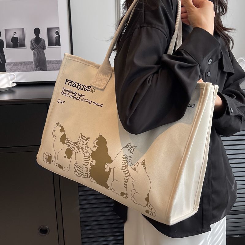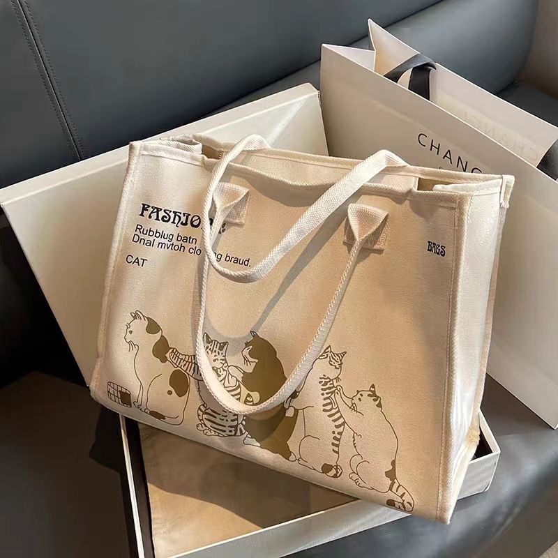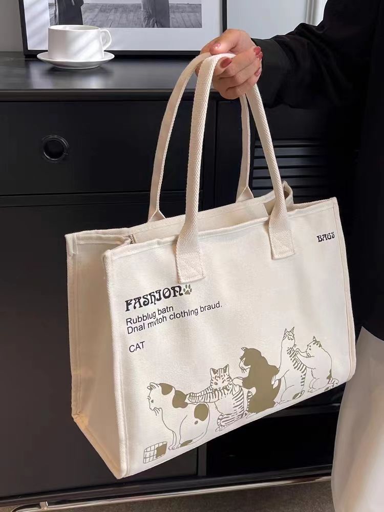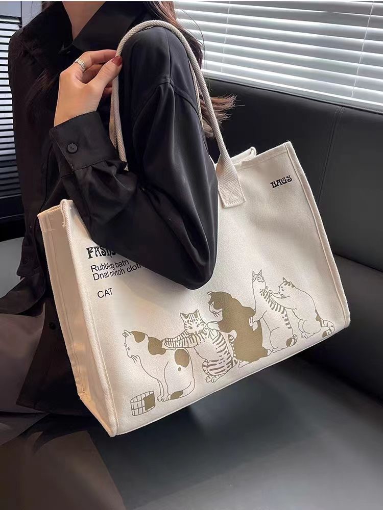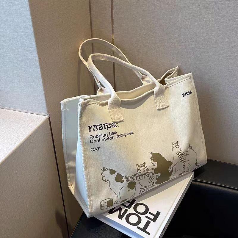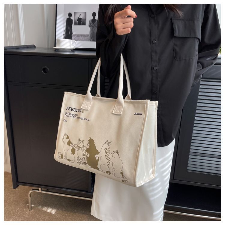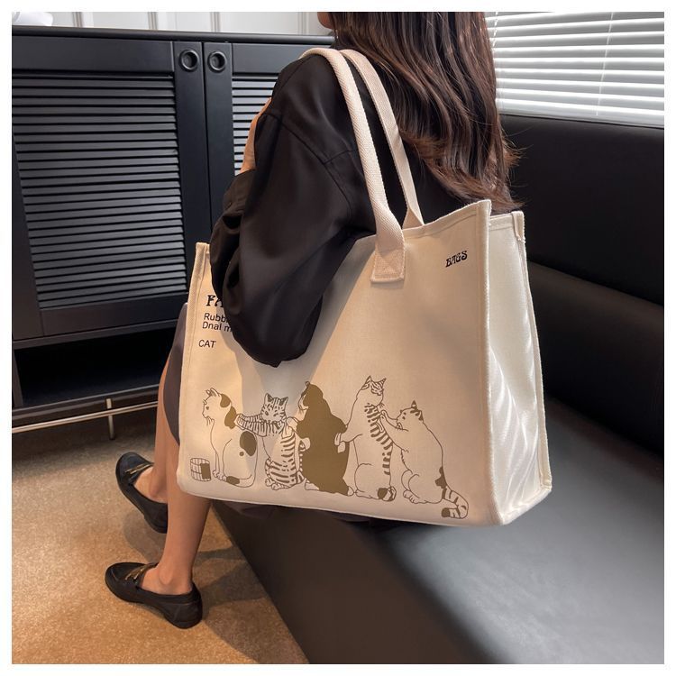 대용량 캔버스 가방 여성 여름 새로운 올 매치 어깨 가방 통근 토트 백 학생 핸드백 미라백스토어 가기